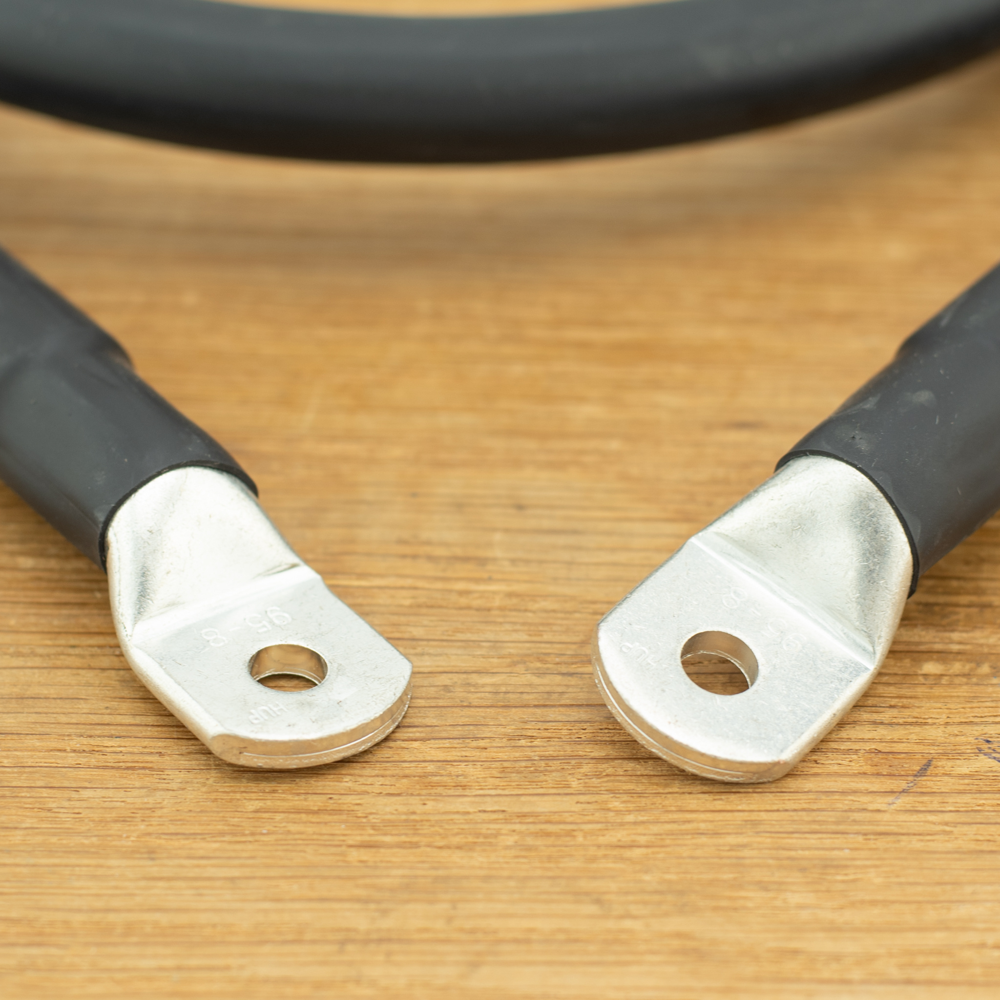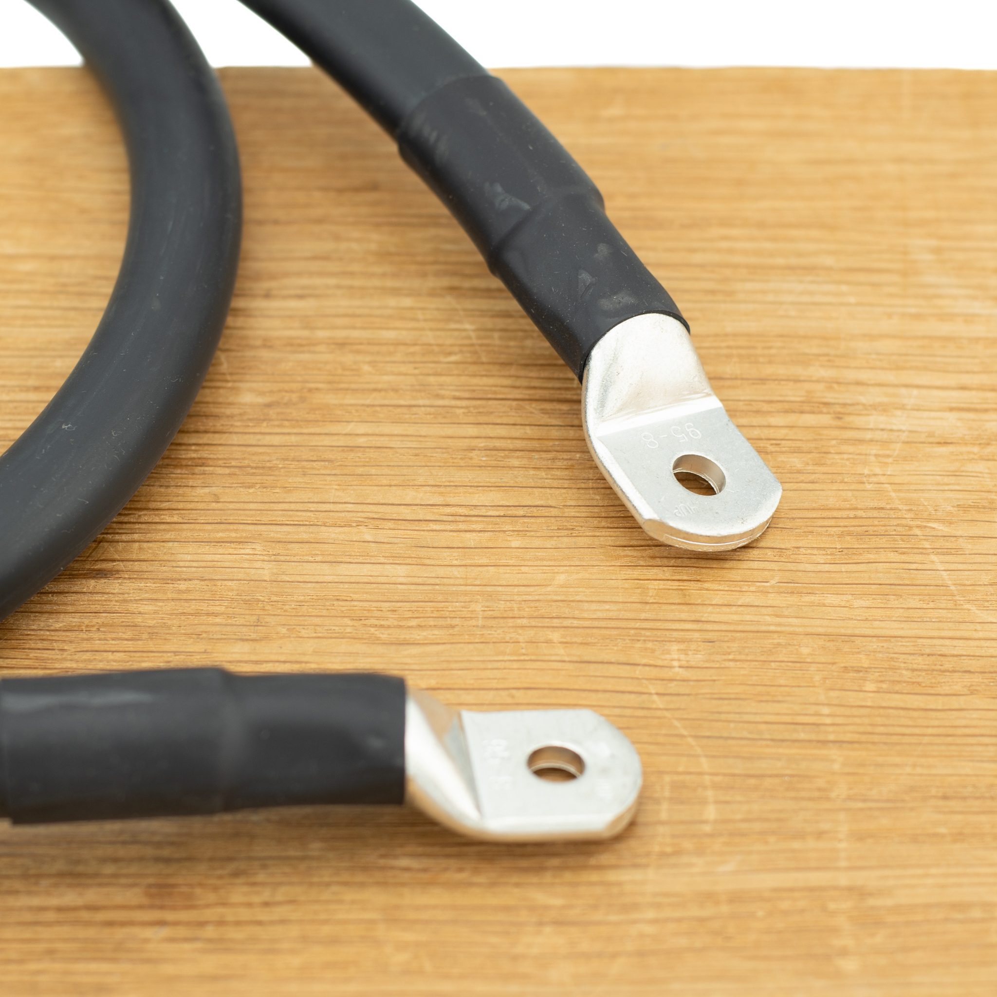 De accukabel is een flexibele dubbel geïsoleerde accukabel in de kleur zwart en heeft een diameter van 95mm². De lengte ervan is 150cm en aan iedere zijde in de kabel voorzien van een M8 perskabeloog. De afwerking is netjes gebeurd met krimpkousen.