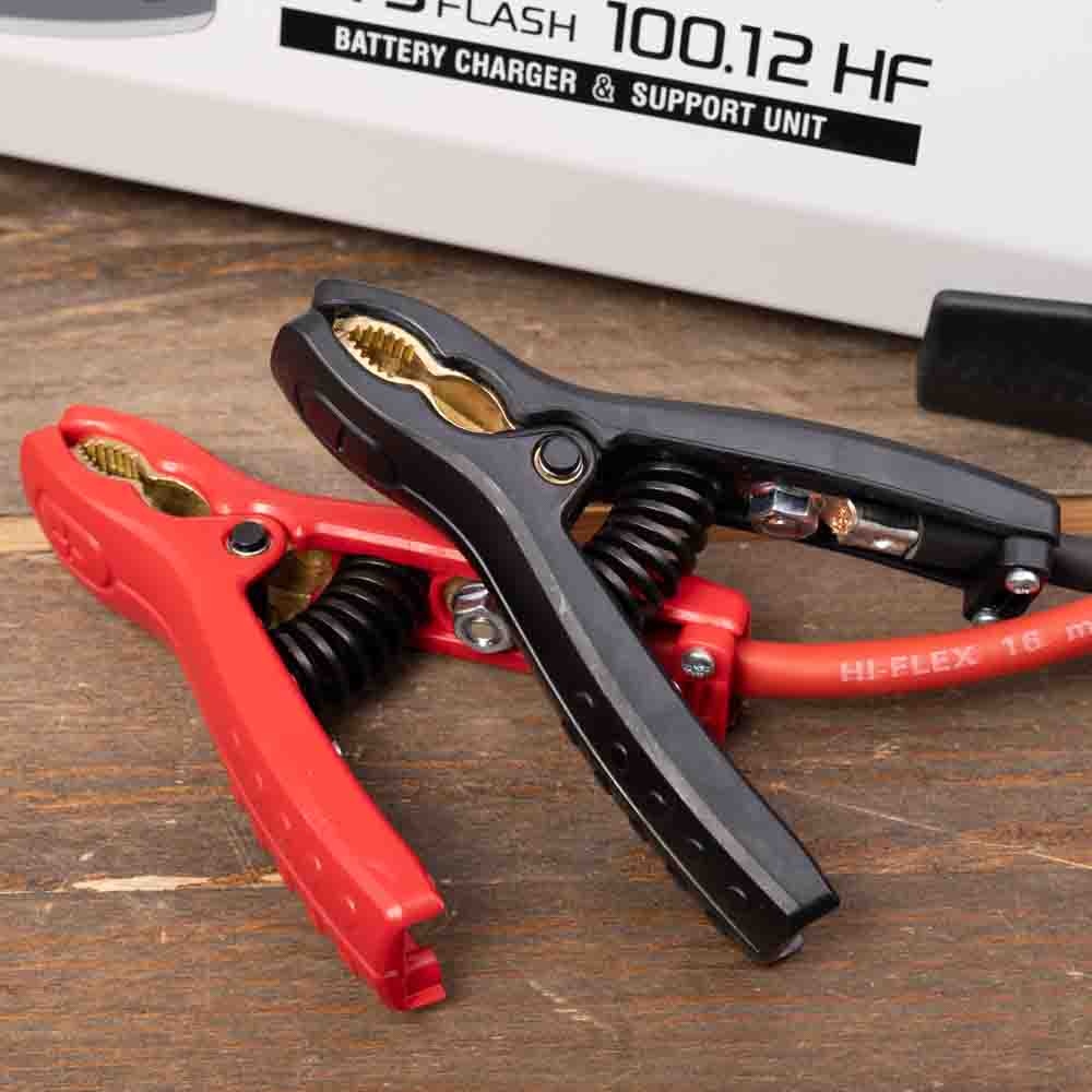 De GYSFLASH 100.12 HF is een multifunctionele max. 100A acculader (1500W) met voeding voor het opladen van 12V loodaccu's (vloeibaar/AGM/GEL) en LiFePO4 accu's van 20-1200AH. Biedt daarnaast voor loodaccu's een krachtige stabiele voeding, aan de hand van inverter technologie met Switch Mode Power Supply. Speciaal ontworpen voor het veilig opladen van genoemde soorten 12V batterijen van showroommodellen of voertuigen die in diagnose zijn, via de Showroom/Diag module. Deze GYS acculader garandeert daarnaast een ideale laadkwaliteit tijdens onderhoudswerkzaamheden van meer geavanceerde modellen auto's. En in de modus 'Vervang accu' wordt het voertuig onder spanning gehouden om geheugenverlies van de instellingen te voorkomen. Deze lader heeft accukabels van 5 meter lang.