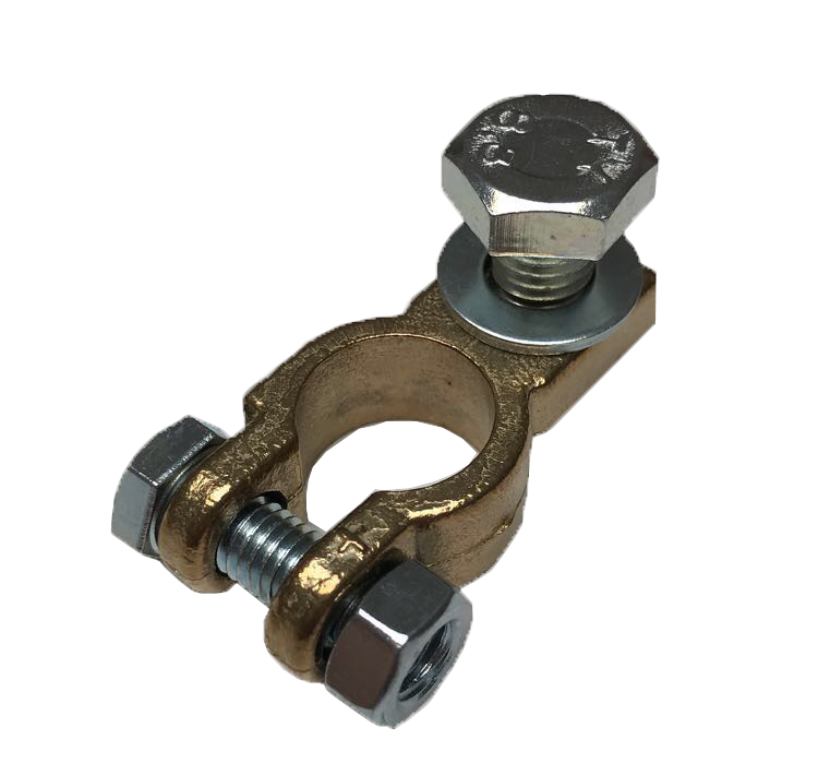 Hoogwaardige corrosiebestendige positieve accupoolklem M10. Op de accuklem staat een + vermeld om aan te geven dat dit een plusklem of positieve accuklem is.