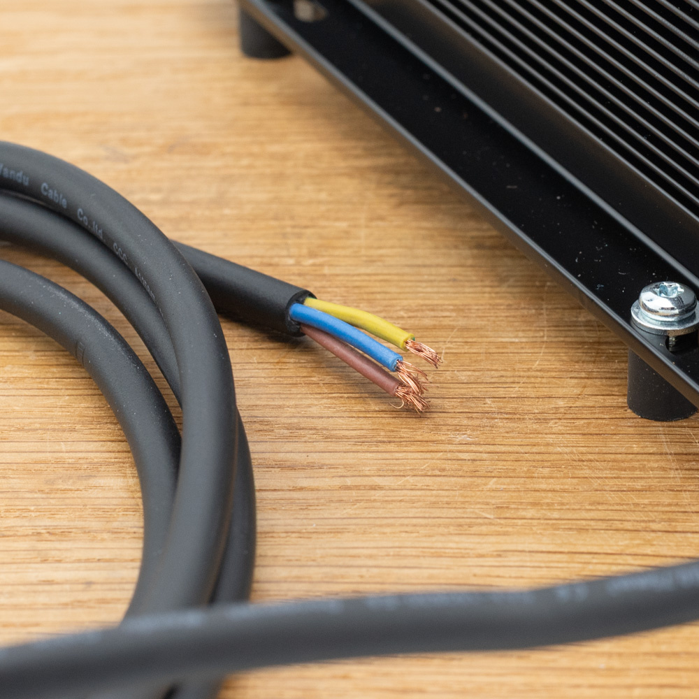 De input van de I2420 is een netsnoer van 2 meter zonder stekker. De aansluiting met het net via een schuko stekker of enige andere aansluiting of stekker kunt u zelf aansluiten.