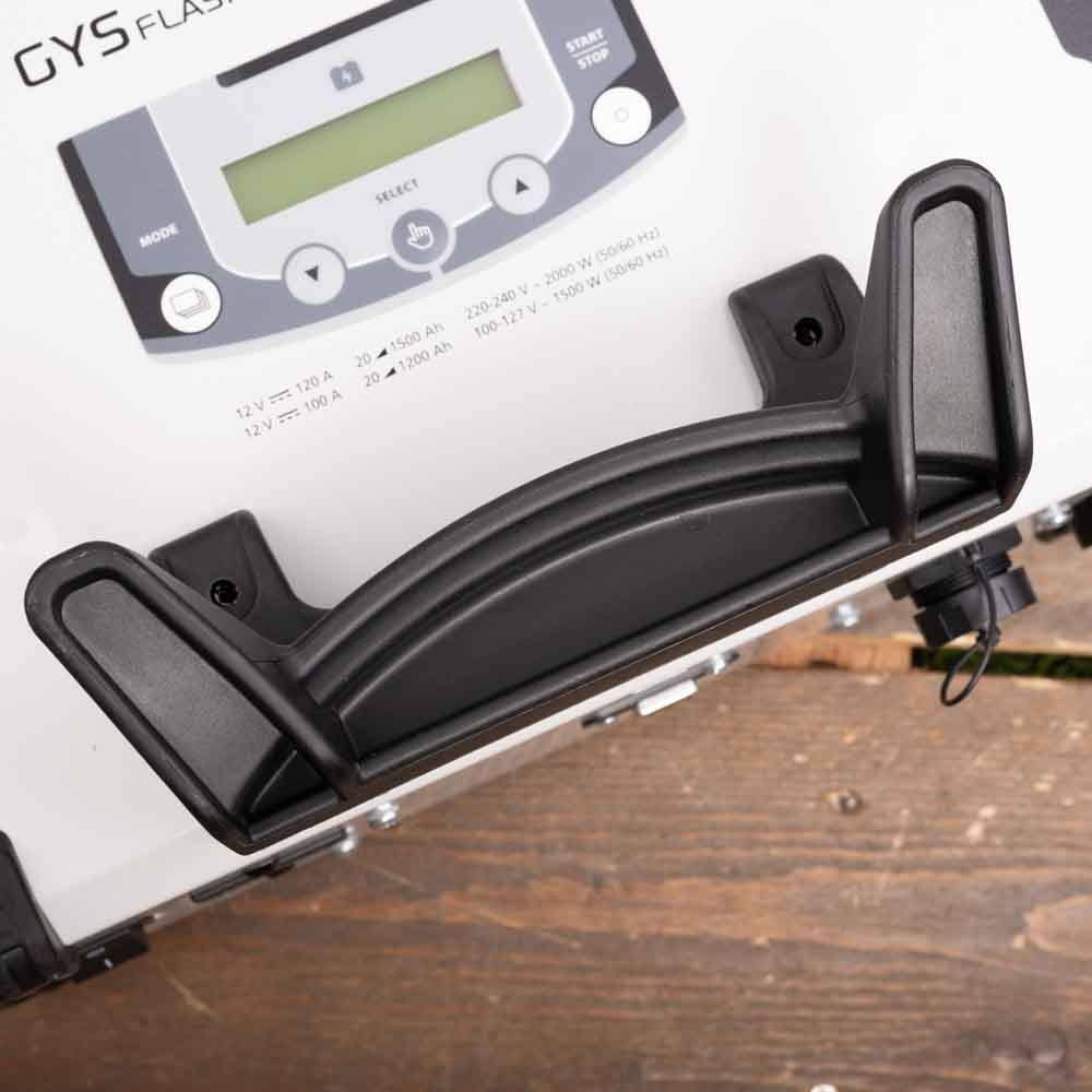 De GYSFLASH 123.12 CNT FV - waarbij CNT staat voor Connected en FV voor Flexibel Voltage - is een krachtige, veelzijdige max. 120A acculader (2000W bij AC ingangsvoltage van 220-240V en 1500W bij 100-127V) met Inverter technologie. Het is een acculader voor 12V loodaccu's (vloeibaar/AGM/Gel) en LiFePO4 accu's van 5-1500Ah.