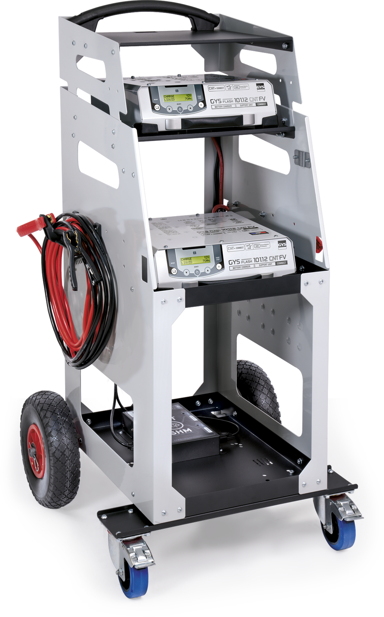 De GYS BSU Flash Plus Trolley Gysflash is geschikt voor de Gysflash HF laders. De trolley biedt ruimte voor een laptop, de Gysflash lader, de kabels, een printer, een scanapparaat en extra planken voor verschillende toepassingen.