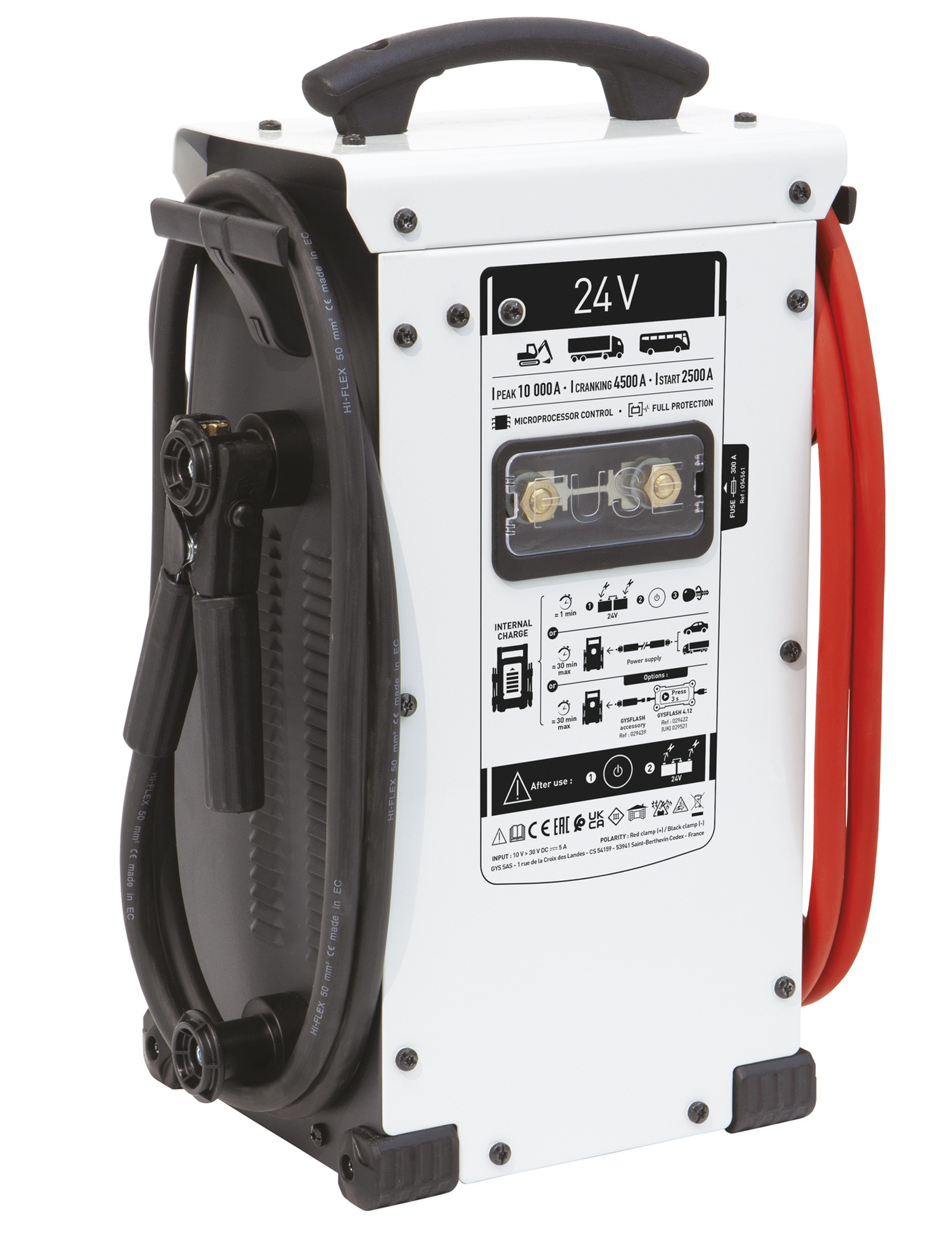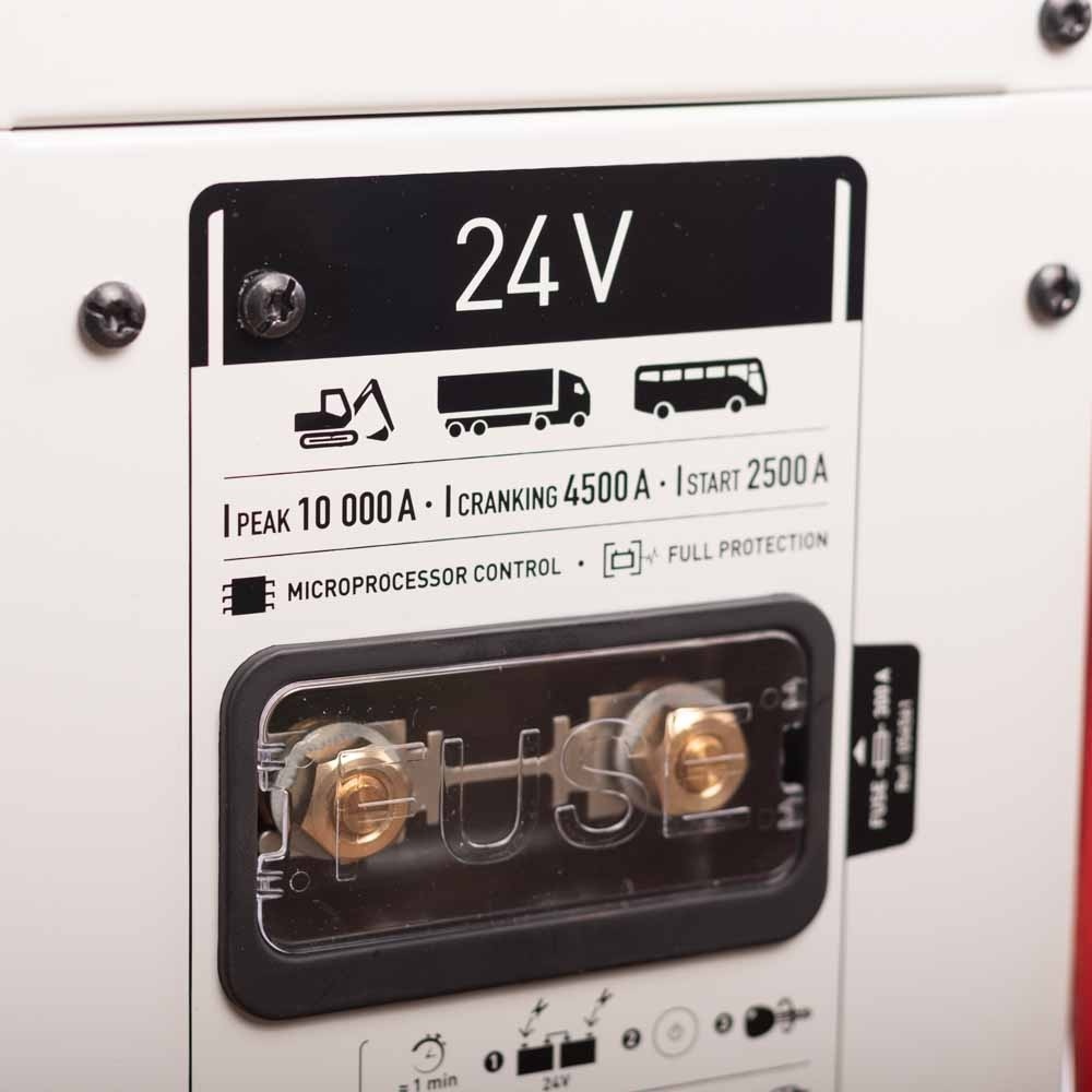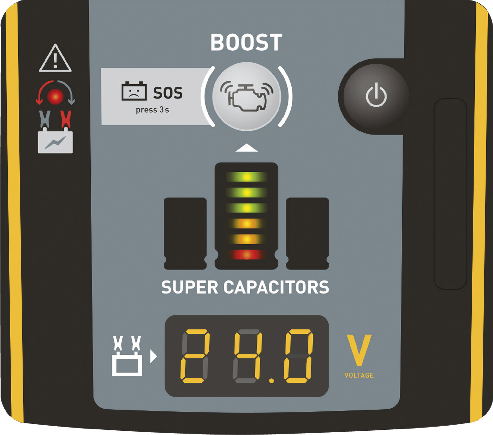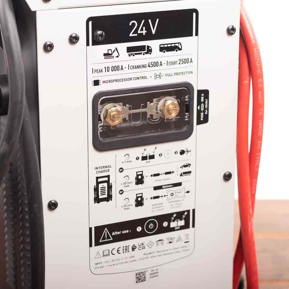 De Gyscap 24V heeft twee opstart-modules, te weten de automatische start of de geforceerde (SOS) startmogelijkheid bedoeld voor voertuigen met diep ontladen accu’s.