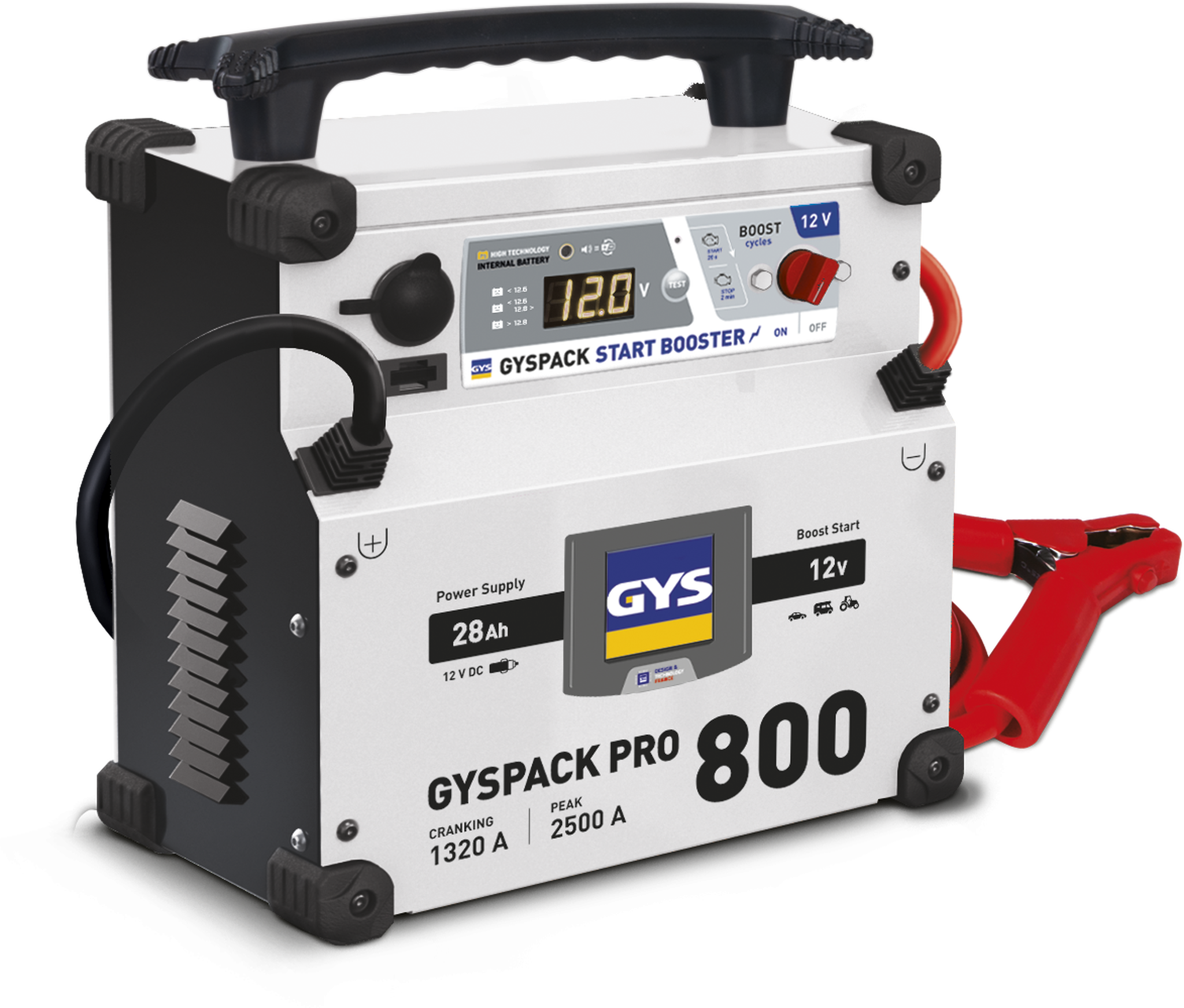 Deze GYSpack Pro 800 van GYS is een startbooster, geschikt voor 12V voertuigen zoals motoren, auto's en kleinere bestelwagens. Het startvermogen van deze booster bedraagt 700A. De GYSpack Pro 800 is een mobiele startbooster die werkt met een interne accu. Hierdoor kunt u de booster opgeladen meenemen en onderweg (zonder dat er 230V stroomtoevoer aanwezig is) een voertuig een starthulp geven.