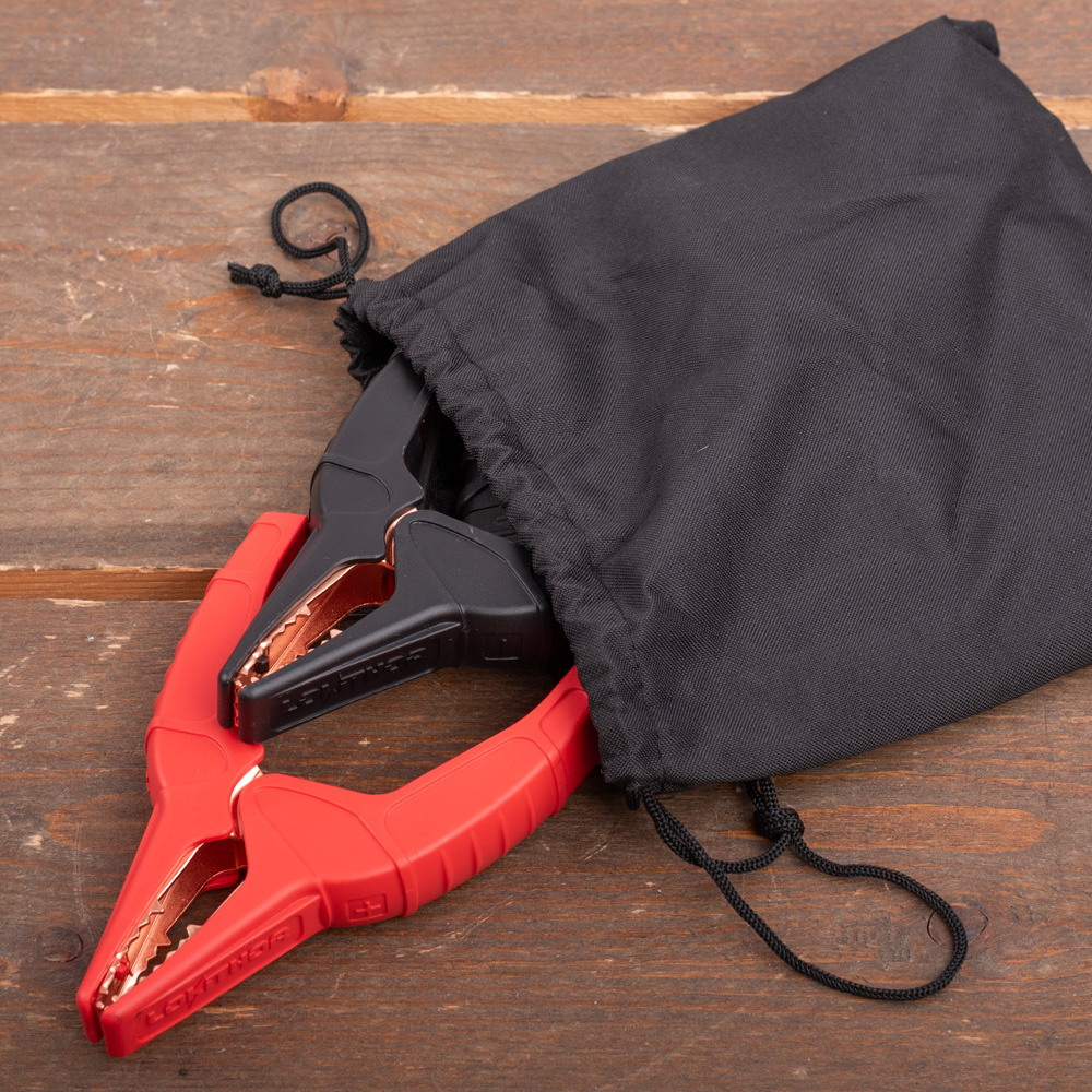 De startboosters van Lokithor zijn altijd uitgerust met hoogwaardige accuklemmen/ krokodillenklemmen die robuust gebouwd zijn en die een laag weerstandsniveau hebben. De kabellengte tussen uw startbooster en de accuklemmen is ongeveer 20cm.