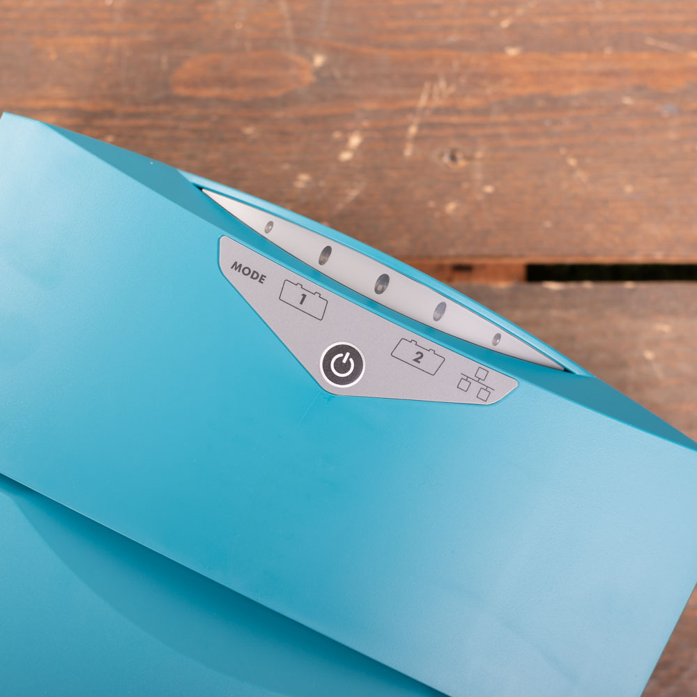 Duidelijke leds op de ChargeMaster Plus 24/110-2 geven alle essentiële informatie weer zoals errors in het systeem, een indicatie of MasterBus communicatie actief is of niet en met welke laadstap de lader actief is. Met de modeknop onder de leds is het hele systeem eenvoudig te bedienen.