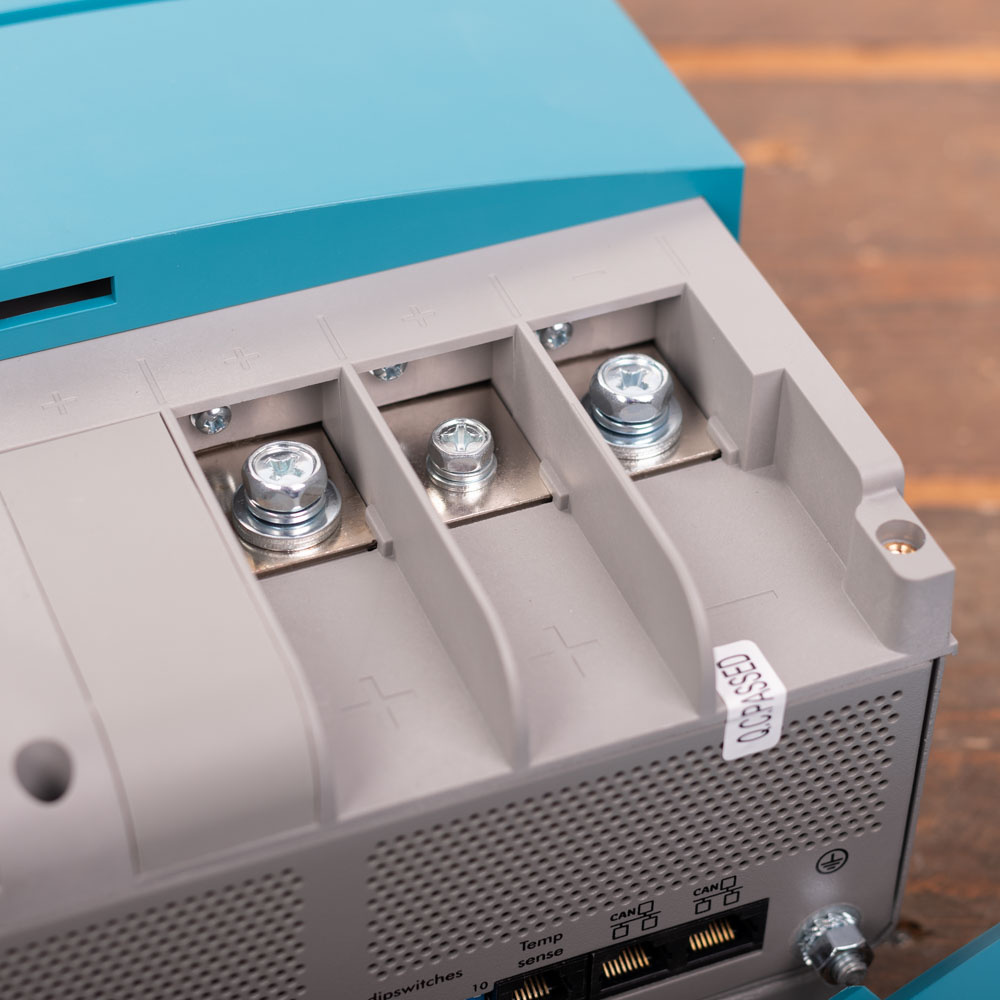 De Mastervolt ChargeMaster Plus 24/110-2 heeft 2 accu-aansluitingen waarmee u gelijktijdig 2 accu's kunt laden en onderhouden, een 24V en een 12V accu.