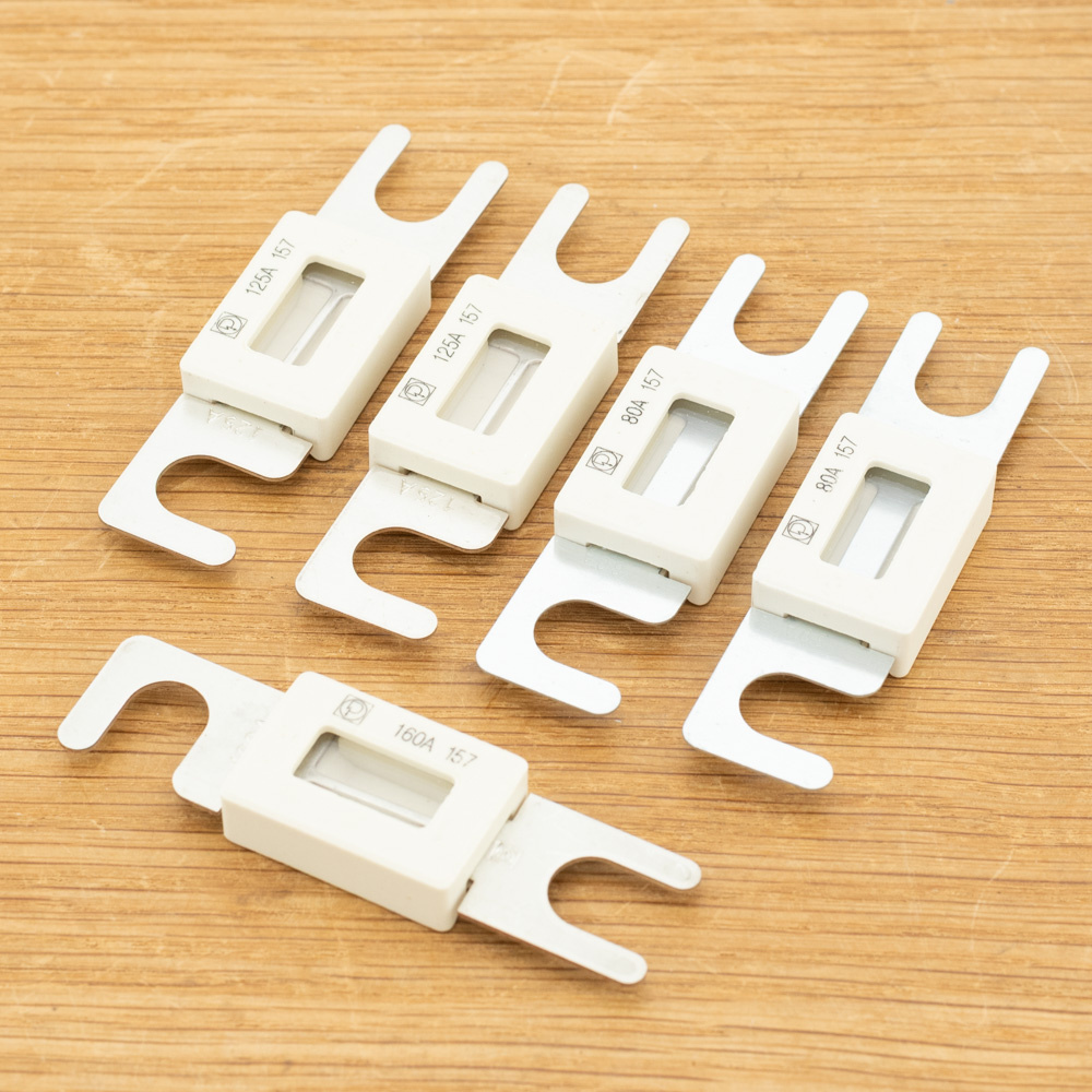 De DC Distribution 500 biedt wordt standaard geleverd met vier ANL zekeringen: 80, 80, 125 en 160 A. Met een reservezekering van 125 A.