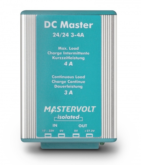 De Mastervolt DC Master 24/24-3 Isolated geeft een stabiel stroomaanbod met de juiste spanning van 27,2V binnen een 24V boordnet. U kunt hiermee dus probleemloos 24V apparatuur aansluiten op een 24V accu. De Mastervolt DC Master 24/24-3 is vooral bedoeld voor recreatief en semi-professioneel gebruik. Deze variant is galvanisch geïsoleerd.