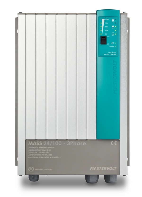 De Mastervolt Mass 24/100-3ph (3 fase) is een professionele stille en krachtige acculader/ druppellader van hoge kwaliteit bedoeld voor het laden en onderhouden van 24V accu's van 200Ah tot ongeveer 1.000Ah. De Mass is ontworpen om te allen tijde, ook onder barre condities, feilloos haar werk te blijven doen.