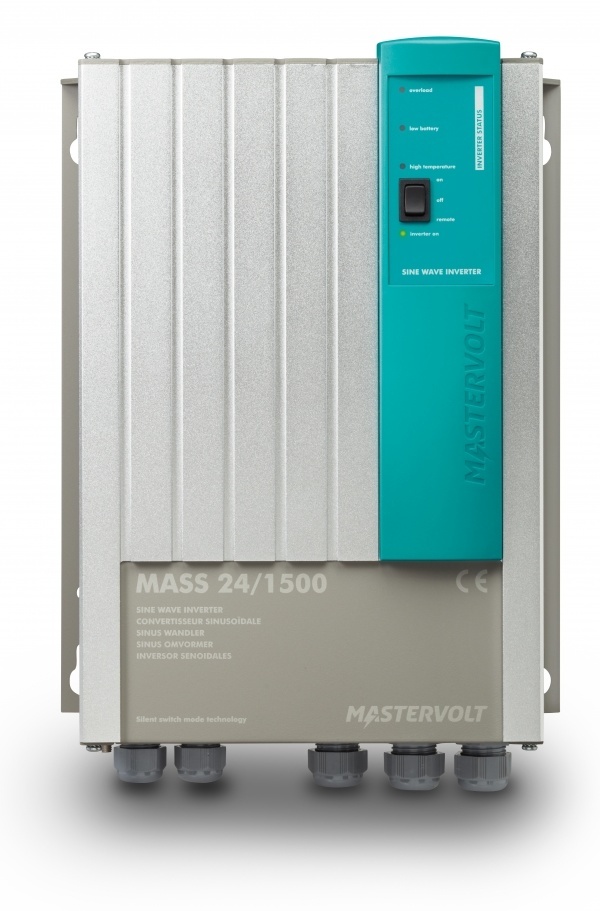 De Mastervolt Mass Sine 24/1500 sinusomvormer converteert een 24 V accuspanning naar een betrouwbare 230 V 50 Hz spanning. De Mass Sine is erop gebouwd om te allen tijde, ook onder barre condities, feilloos te blijven werken.