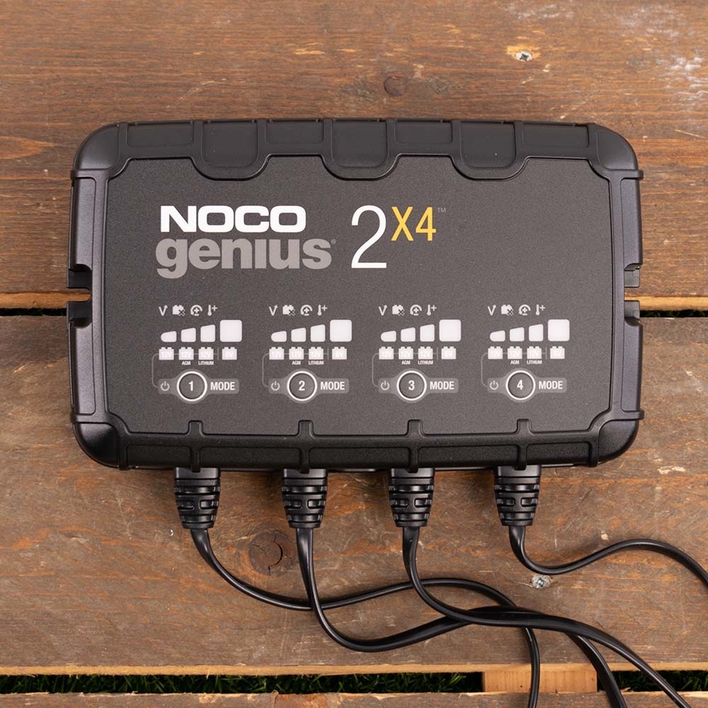 De Noco Genius 2 x 4 is een volautomatische acculader. U heeft er geen omkijken naar, ‘aansluiten en vergeten’ dus. De Noco Genius 2 x 4 bevat meerdere oplaadstappen en instelbare programma’s 6V en 12V accu's.