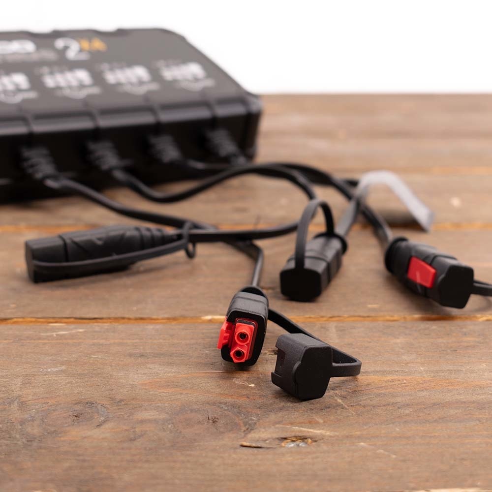 De Noco Genius 2 x 4 kan 4 accu's gelijktijdig laden en onderhouden. De Genius 2 x 4 kan 4 verschillende accu's met ook verschillende voltages of verschillende type accu's gelijktijdig goed opladen en onderhouden.