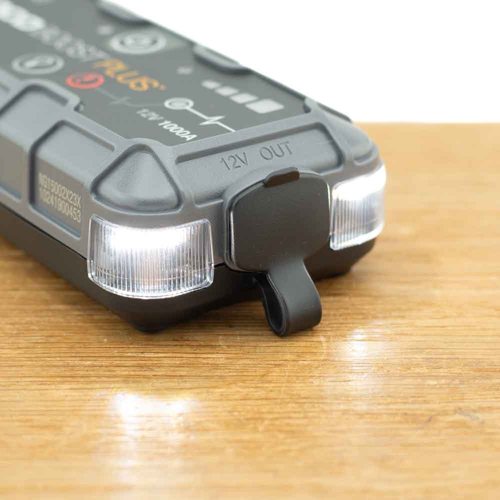 Aan één zijde (aan de output zijde) van de GB40 zijn 2 krachtige witte LED lichten aanwezig die in 7 verschillende modi kunnen branden of knipperen. Ze kunnen gebruikt worden om in het donker bij te schijnen onder de motorkap of bij de accu. Ze kunnen ook gebruikt worden als SOS licht of noodsignaal verlichting. Deze LED verlichting kan ook gewoon gebruikt worden als krachtige zaklamp. Een krachtige zaklamp bij u hebben kan altijd van pas komen.