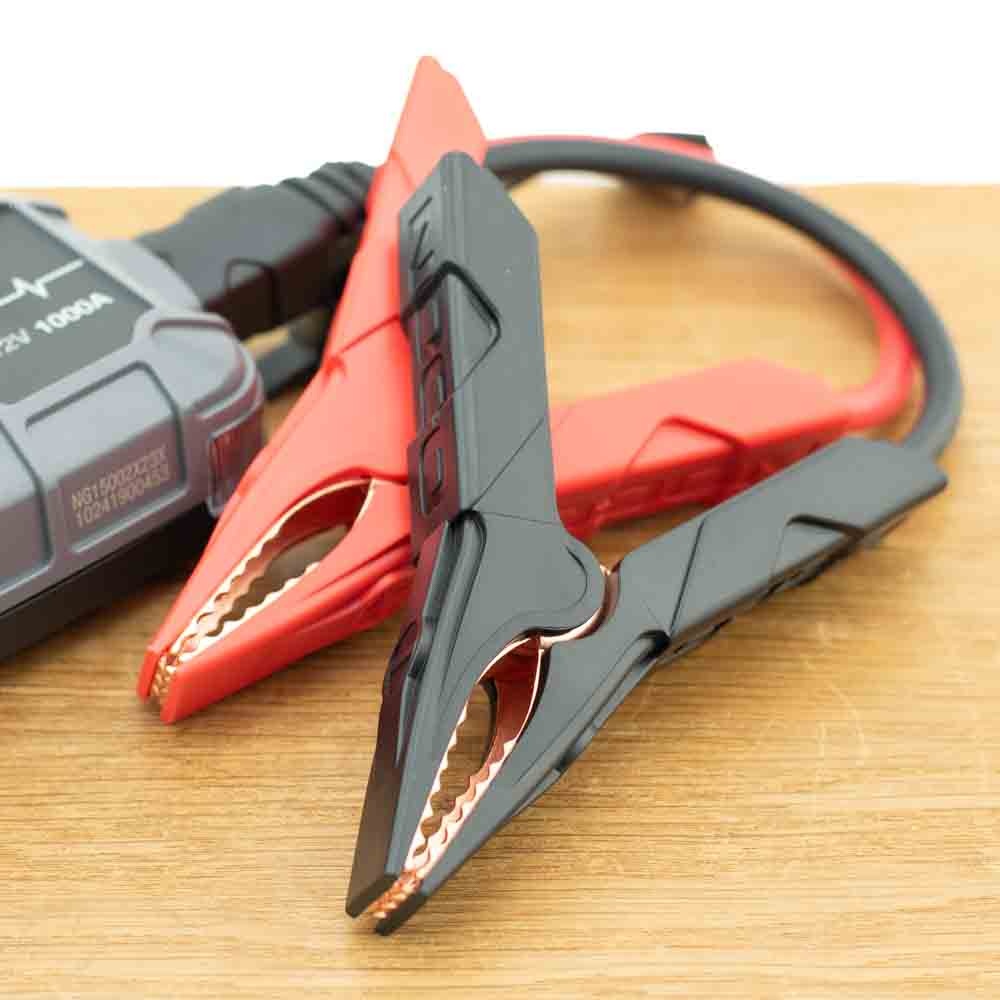 De Genius startboosters zijn altijd uitgerust met hoogwaardige accuklemmen/ krokodillenklemmen die robuust gebouwd zijn en die een laag weerstandsniveau hebben. De kabellengte tussen uw startbooster en de accuklemmen is 20cm.