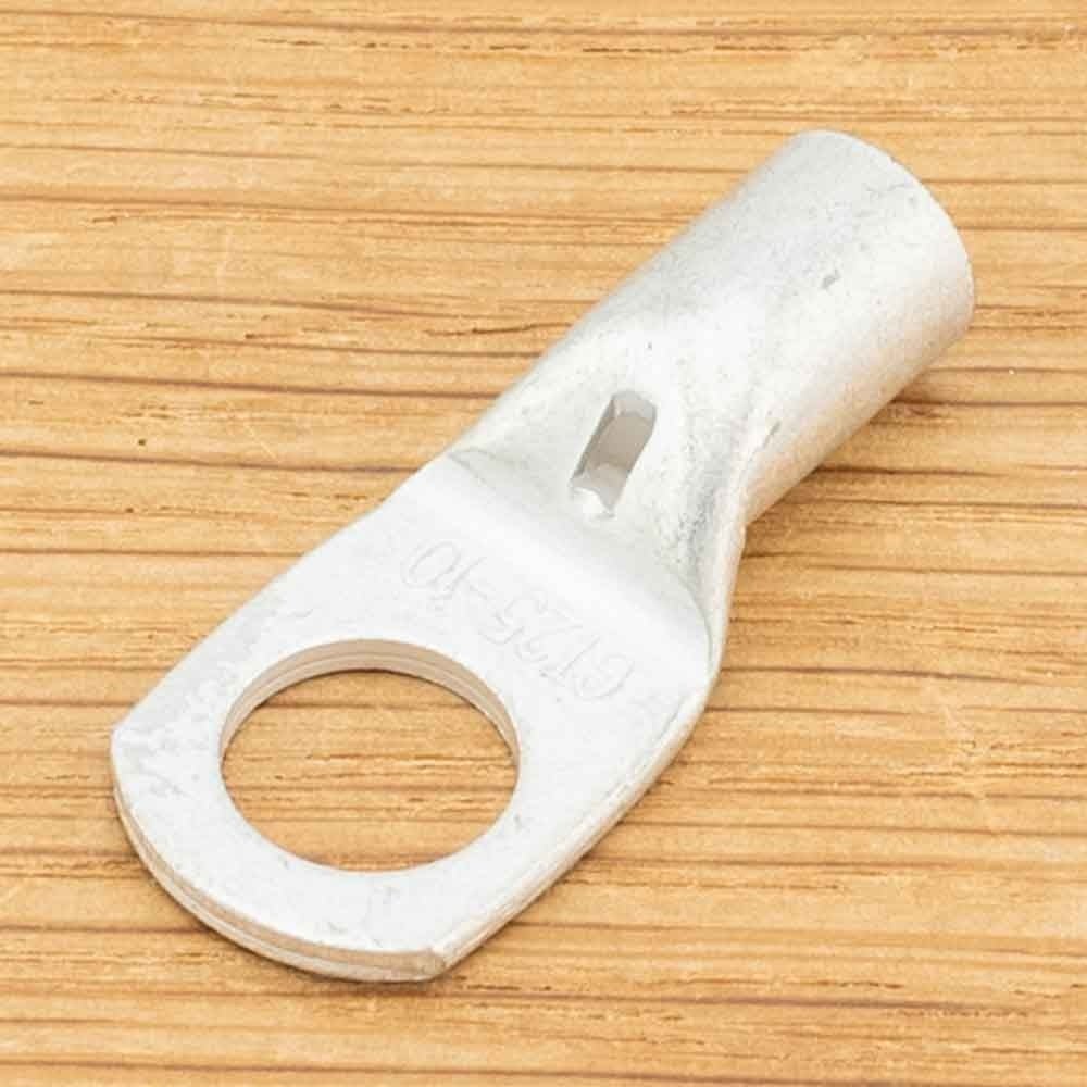 Met dit perskabeloog, ook wel buiskabelschoen genoemd, maakt u een soliede verbinding met uw accupool of aansluiting op een M10 draadeind. Goede elektrische verbindingen zijn belangrijk om spannings- en vermogensverlies te beperken. Met name bij mobiele en maritieme toepassingen kunnen trillingen funest zijn. Een goede aansluiting op uw accu of draadeind is dan van groot belang. Voor een sterke en goed geleidende verbinding dienen de ogen geperst of gesoldeerd te worden.