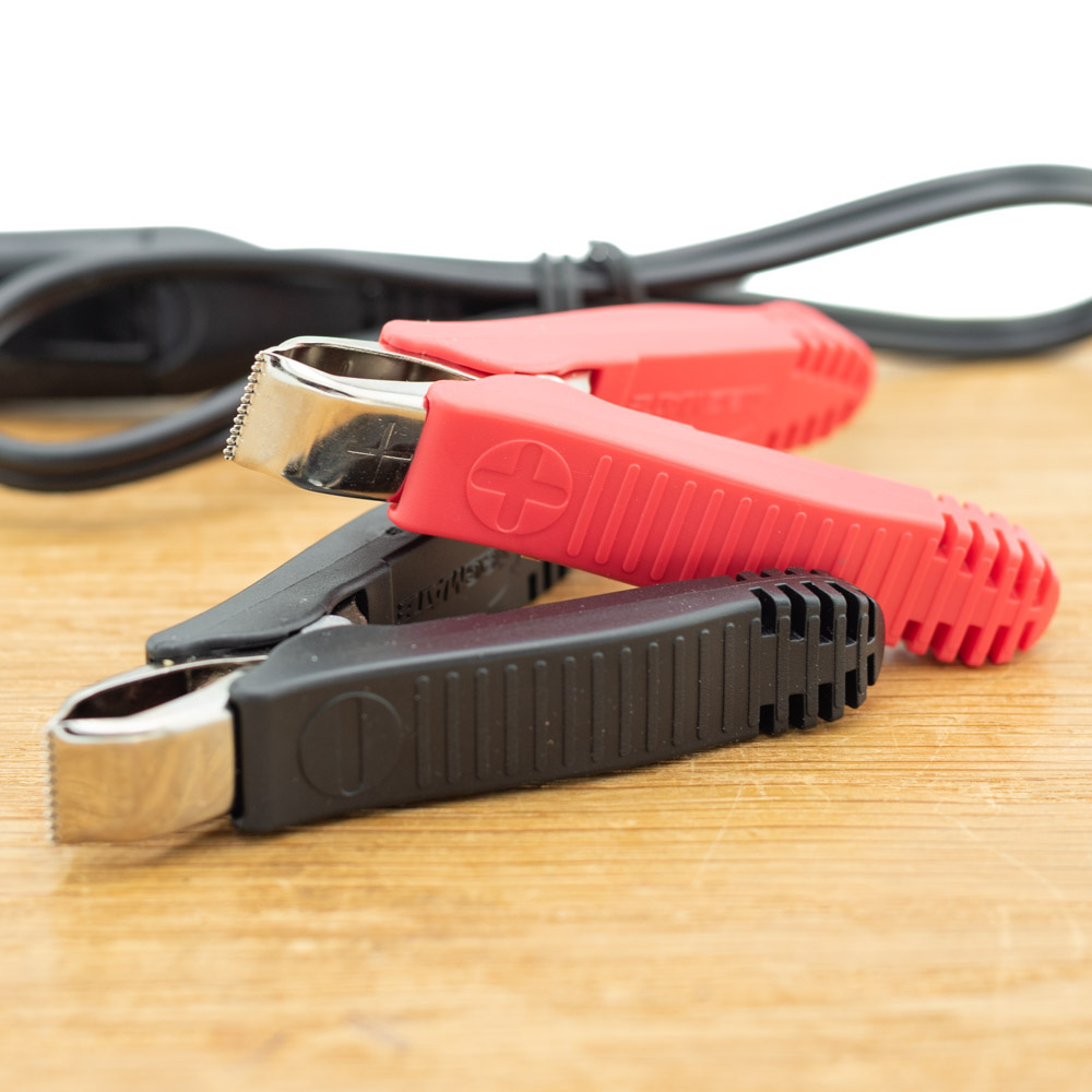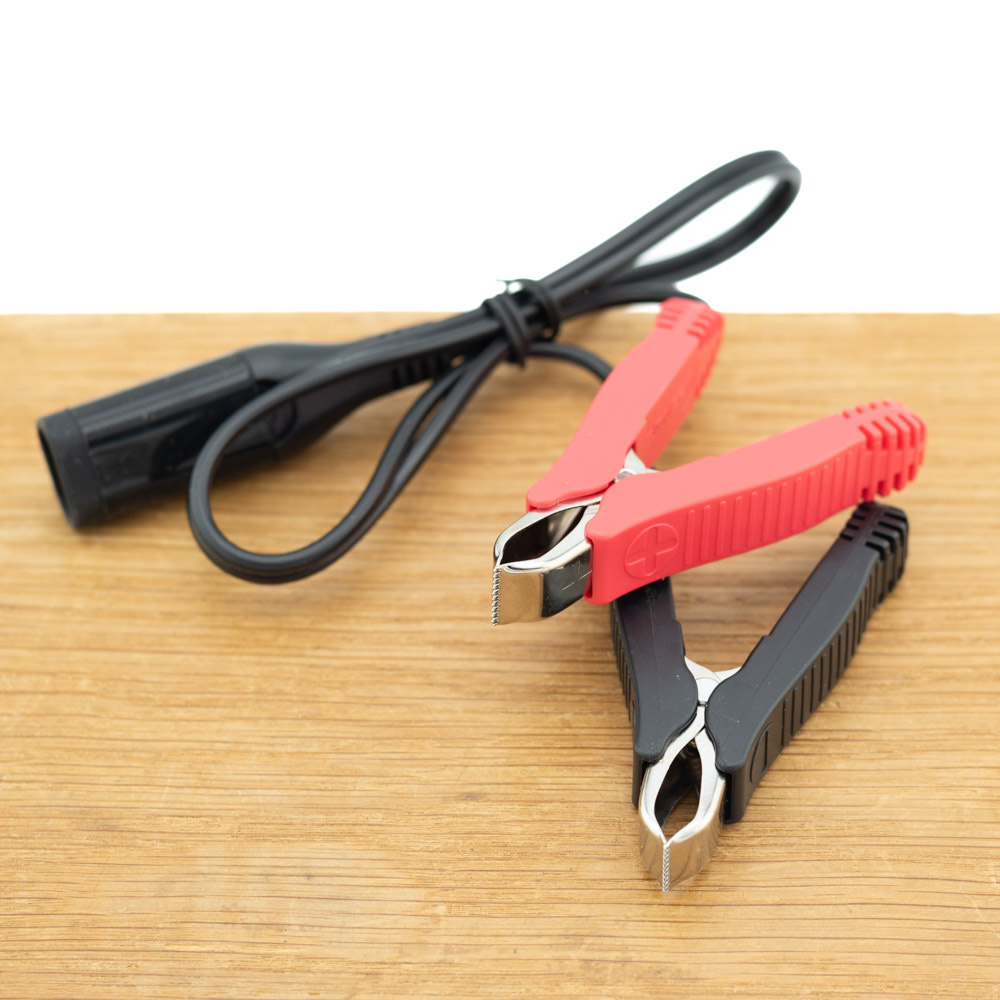 En met de O14 kunt u vanaf de laadregelaar met krokodillenklemmen de lader aansluiten op de accupolen.