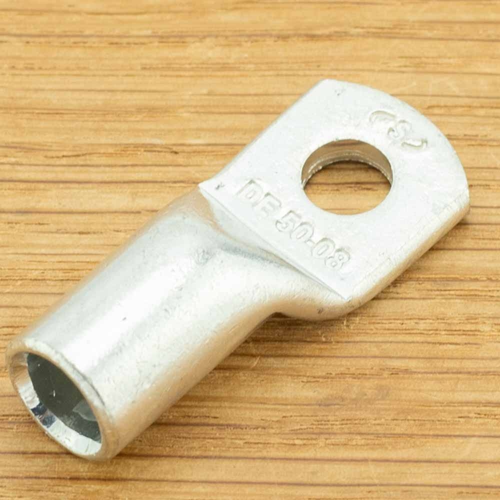 Dit perskabeloog/buiskabelschoen heeft een kabeldiameter van 50mm² en een aansluitoog M8.