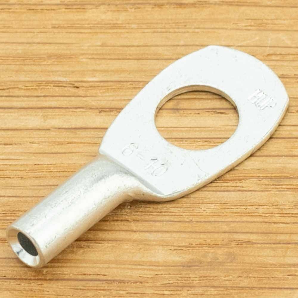 Met dit perskabeloog maakt u een soliede verbinding met uw accupool of aansluiting op een M10 draadeind. Goede elektrische verbindingen zijn belangrijk om spannings- en vermogensverlies te beperken. Met name bij mobiele en maritieme toepassingen kunnen trillingen funest zijn. Een goede aansluiting op uw accu of draadeind is dan van groot belang. Voor een sterke en goed geleidende verbinding dienen de ogen geperst of gesoldeerd te worden.