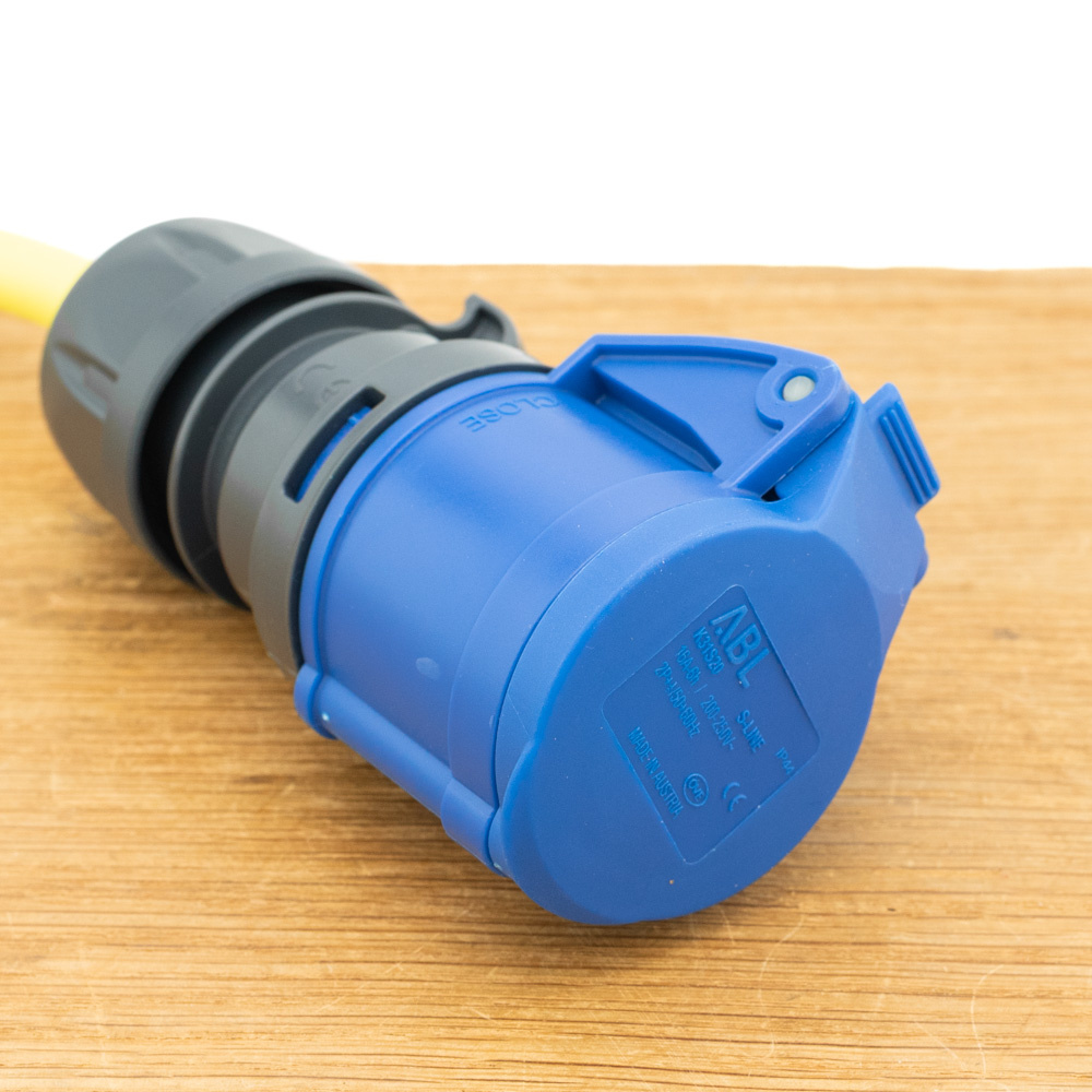 U kunt deze adapter prima gebruiken als u zelf een 1 fasig verlengsnoer heeft voor 32A. Op plaatsen waar dan alleen een 3 fasig 32A stopcontact aanwezig is kunt u dan toch aansluiten en stroom gebruiken.