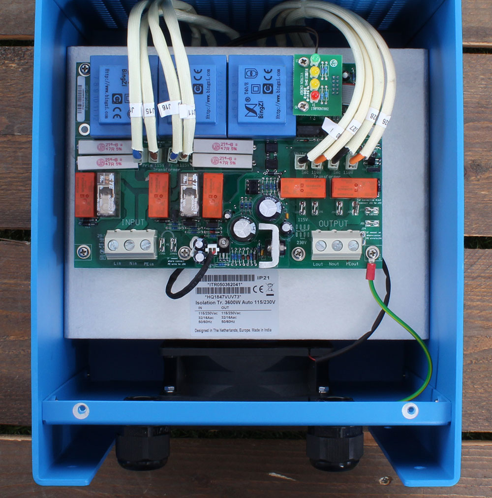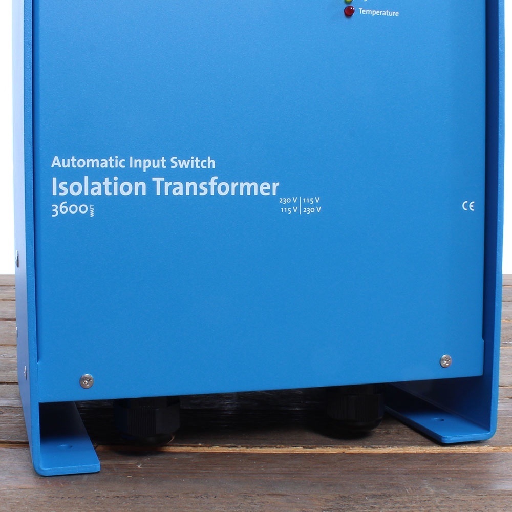 Deze Victron scheidingstransformator 3600W Auto 115/230V kan zowel aangesloten worden op een 115V als op een 230V walstroom net. De scheidingstransformator kan gebruikt worden als scheidingstransformator 230V naar 115V, scheidingstransformator 230V naar 230V, scheidingstransformator 115V naar 230V of als scheidingstransformator 115V naar 115V. De ingangsspanning wordt door deze 3600W Auto variant van de 3600W scheidingstrafo's automatisch geselecteerd. Dit laatste is fijn als u met de boot aanmeert in verschillende landen met verschillende walstroom netvoltages.