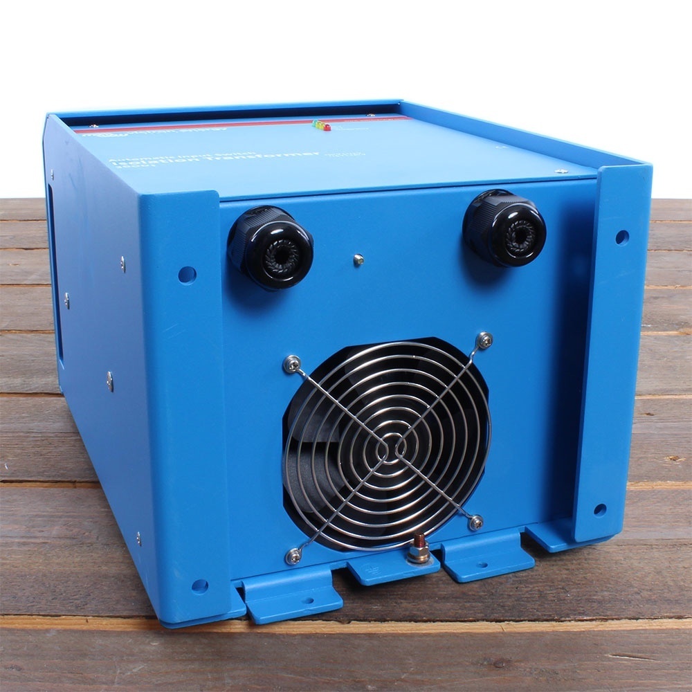 De Victron scheidingstrafo is beveiligd tegen oververhitting. De scheidingstransformator wordt gekoeld door een ventilator. Het toerental van deze ventilator wordt gecontroleerd afhankelijk van de temperatuur in de trafo. Bij oververhitting zal de scheidingstransformator uitschakelen.