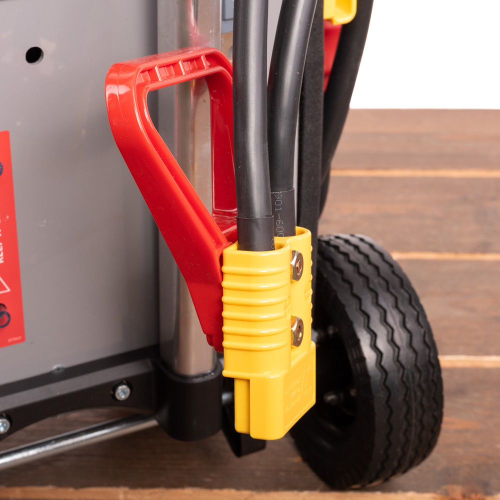 Deze Booster wordt geleverd als trolley dus inclusief wieltjes. Zo kunt u de Booster gemakkelijk meenemen in de werkplaats.