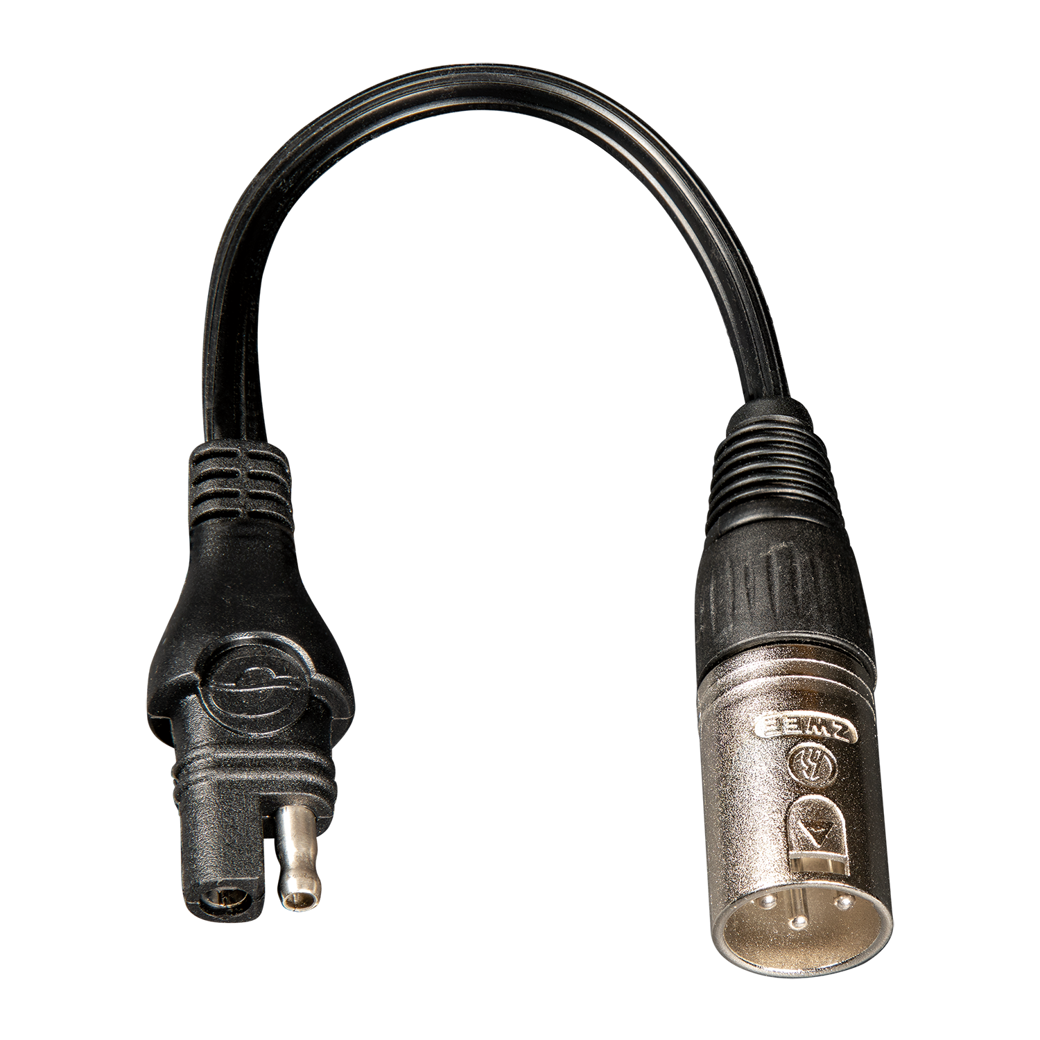 Deze verlengkabel heeft aan een uiteinde van de kabel een SAE aansluiting/ stekker en aan de andere kant een XLR 3-pins aansluiting.
