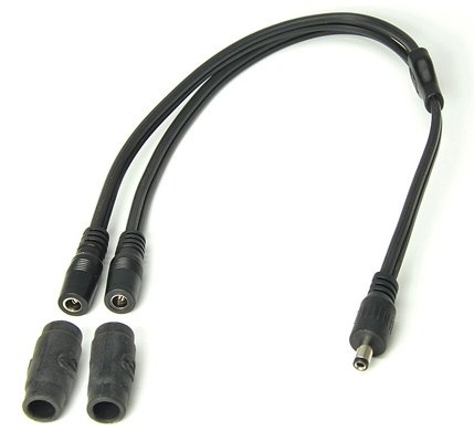 De Optimate Y-splitter kabel heeft een ingang DC-stekker van 2,5 mm en 2 uitgang DC-contacten van 2,5 mm. Hiermee kunt u met 1 DC uitgang 2 DC uitgangen maken. Hiermee kunt u bijvoorbeeld 2 elektrisch verwarmde kledingstukken (jas, handschoenen enz.) aansluiten.