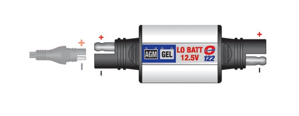 Deze SAE spanningsindicator O-122 monitort het laadniveau van een AGM of Gel accu. De monitor gaat knipperen als de accuspanning onder de 12,5V komt.