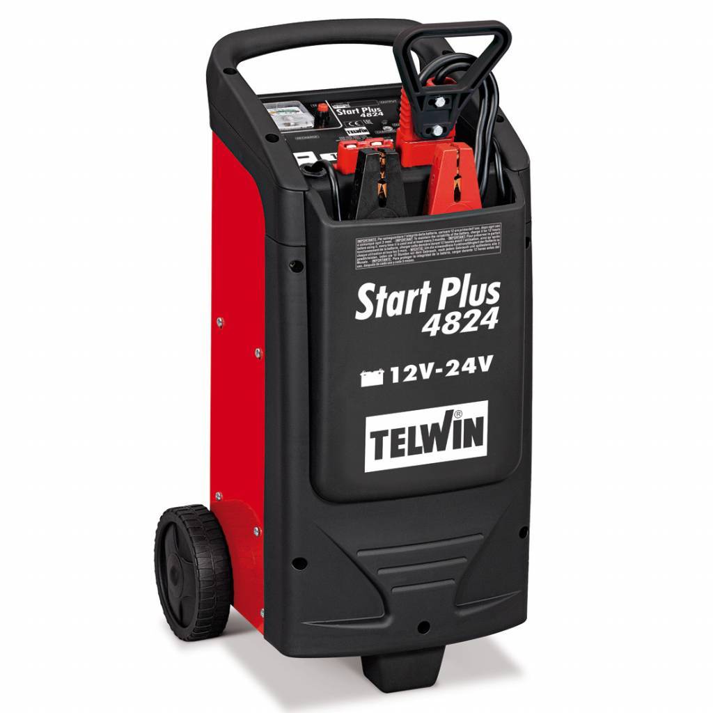 Deze Start Plus 4824 is geschikt voor o.a. het starten van een auto's, grote boten, landbouwvoertuigen, graafmachines, vrachtwagens met dieselmotoren (tot 500PK) en dat meermalen achtereen. De Telwin Start Plus 4824 start 12V systemen/ motoren tot ongeveer 175PK zonder assistentie en tot 350PK in assistentie (van de accu in het voertuig) en 24V systemen/ motoren tot ongeveer 250PK zonder assistentie en tot 500PK in assistentie (van de accu in het voertuig).