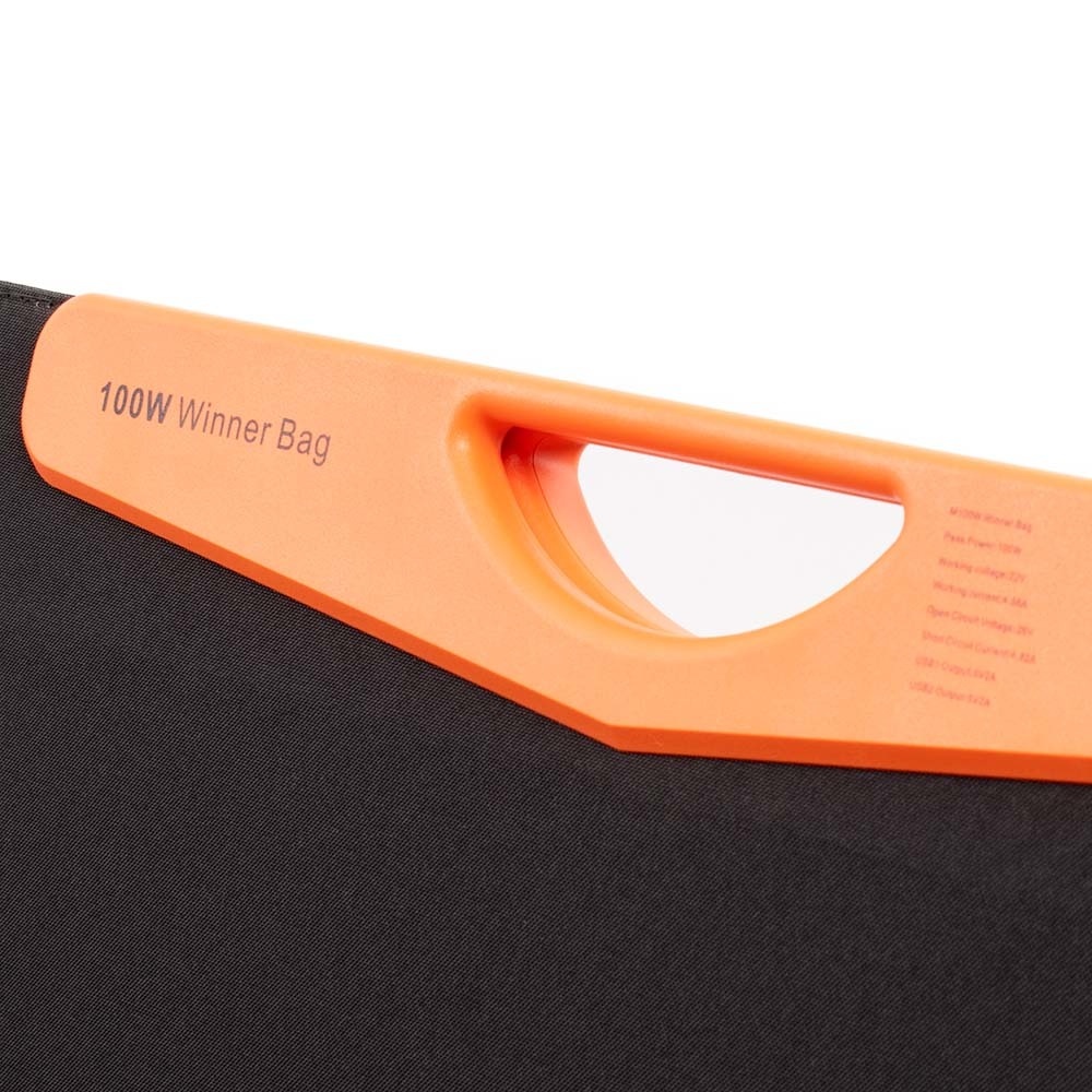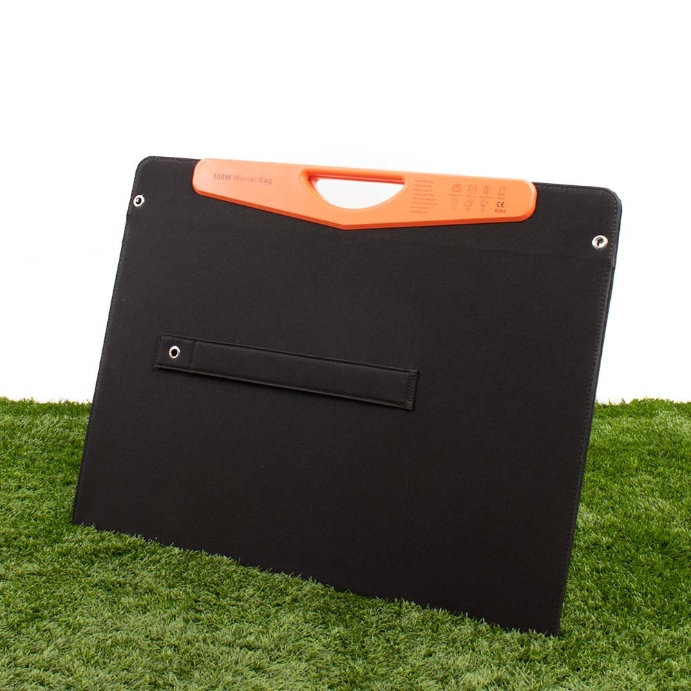 Dit innovatieve opvouwbare en draagbare zonnesysteem van 100 Wp kunt u prima gebruiken tijdens kamperen, wandelen en reizen. U heeft hiermee altijd uw eigen mobiele stroomvoorziening bij u. Het paneel kan opgevouwen meegenomen worden in een tas en is uitgevouwen 660x1040x25mm groot (afmetingen in de tas bedragen 660x520x45mm).