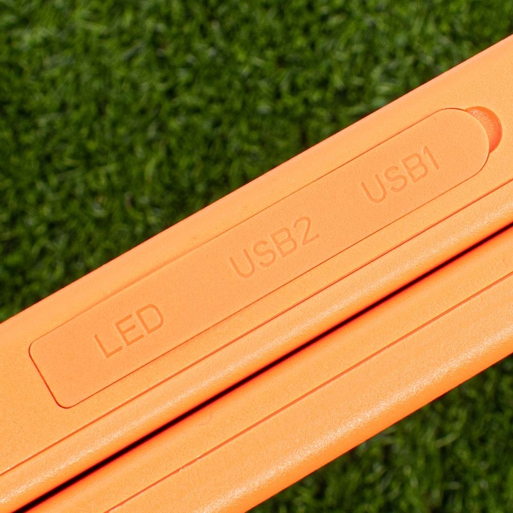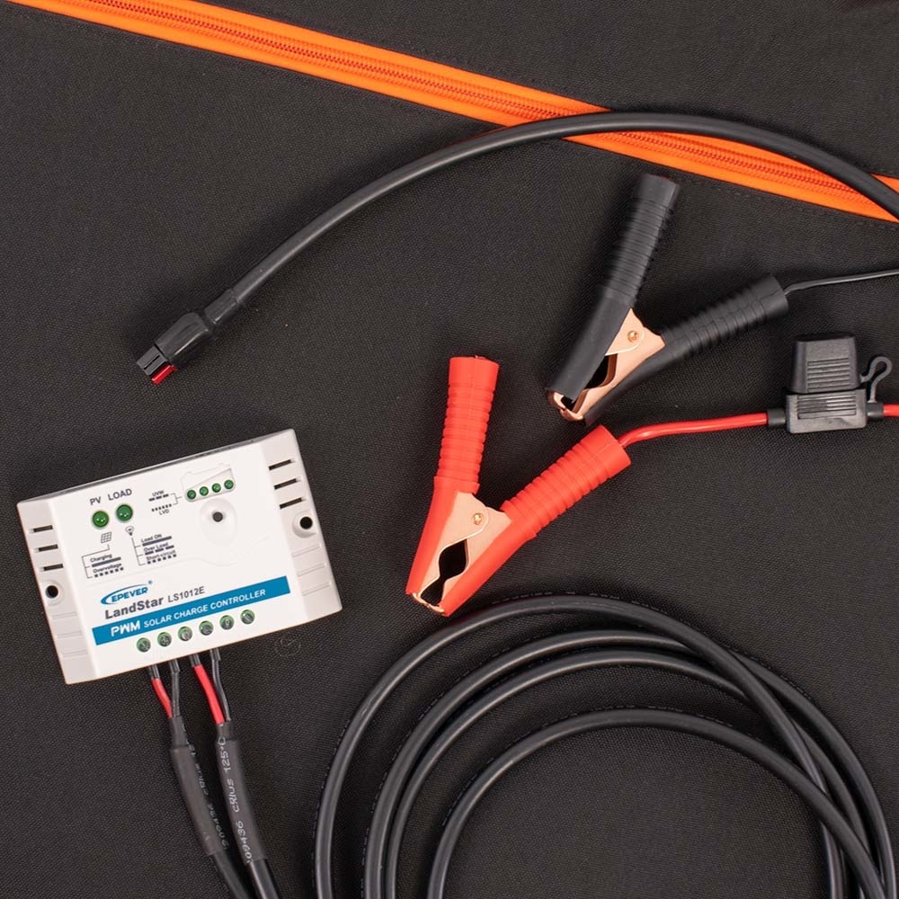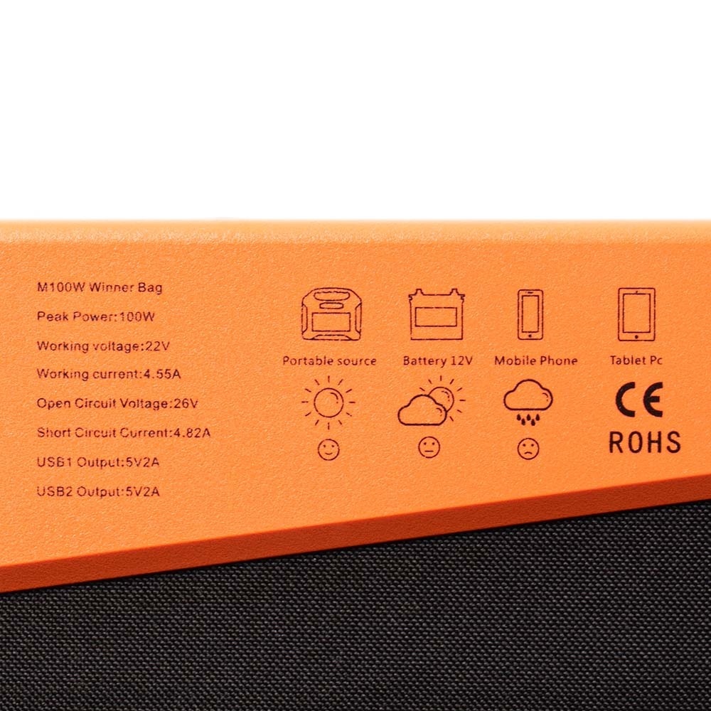 De tas wordt geleverd met twee USB-poorten die geschikt zijn voor het opladen van mobiele apparaten. Daarnaast kan met de bijgeleverde PWM laadregelaar een 12V accu worden geladen. De laadregelaar kan worden aangesloten op de accu met accuklemmen.