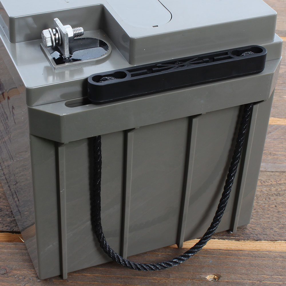 Deze accu is makkelijk mee te tillen met de handige draagtouwen aan weerszijden van de accu.