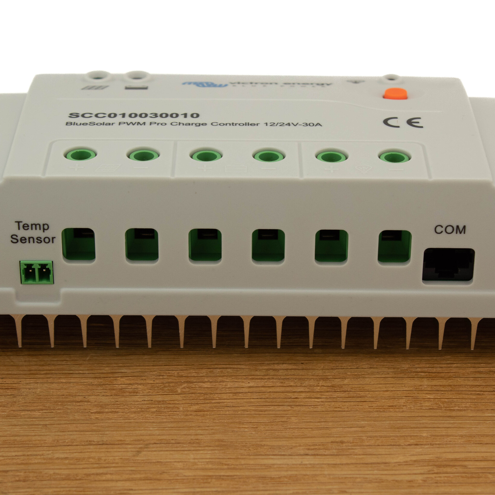 De Victron BlueSolar PWM Pro werkt op basis van PWM (Pulse Width Modulation) techniek en biedt een goede oplossing om accu’s te laden door middel van zonne-energie. De BlueSolar PWM Pro 12/24V 30A is geschikt voor zonnepanelen met een maximaal input voltage van 50V open klemspanning (28V voor 12V systemen).