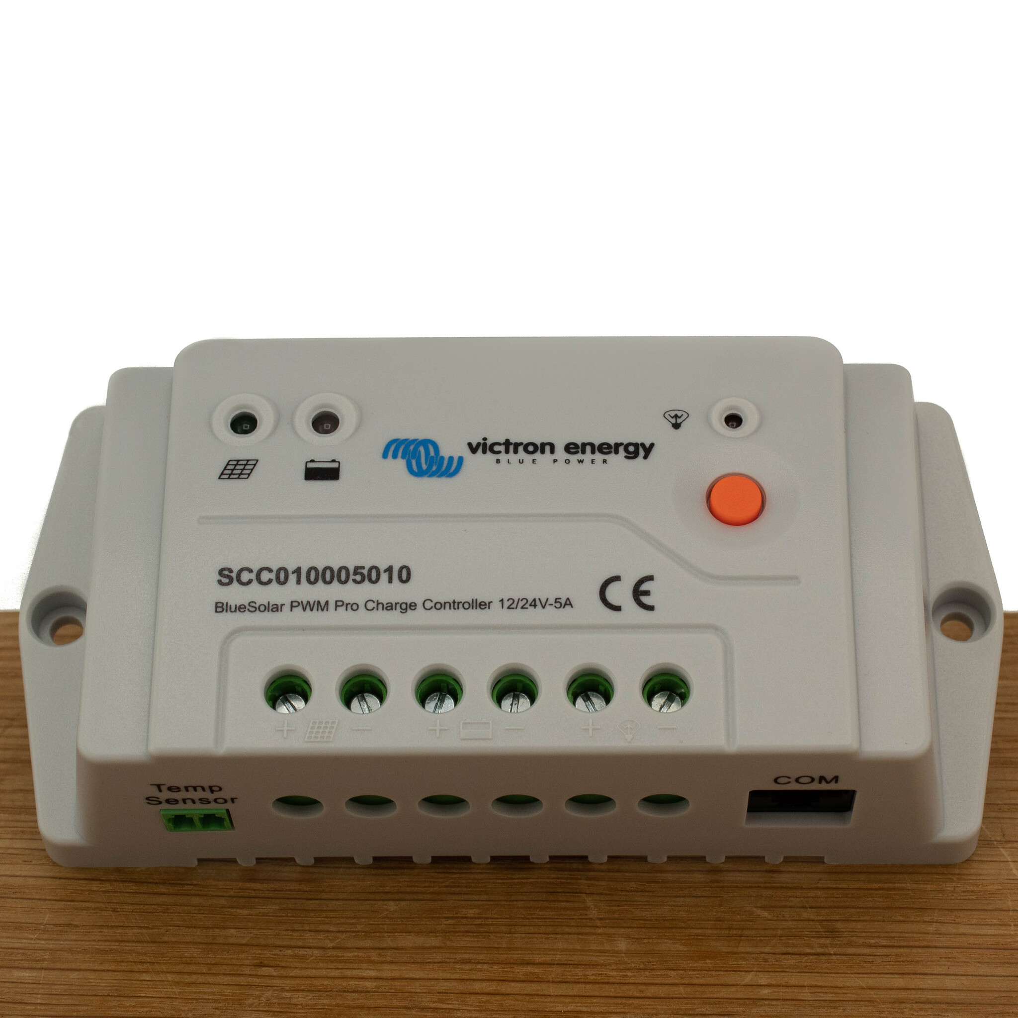 De Victron BlueSolar PWM Pro werkt op basis van PWM (Pulse Width Modulation) techniek en biedt een goede oplossing om accu’s te laden door middel van zonne-energie. De BlueSolar PWM Pro 12/24V 5A is geschikt voor 36 cel panelen (max. input voltage 28V en max. 5A) in een 12V systeem en 72 cel panelen (max. input voltage 55V en max. 5A) in een 24V systeem.