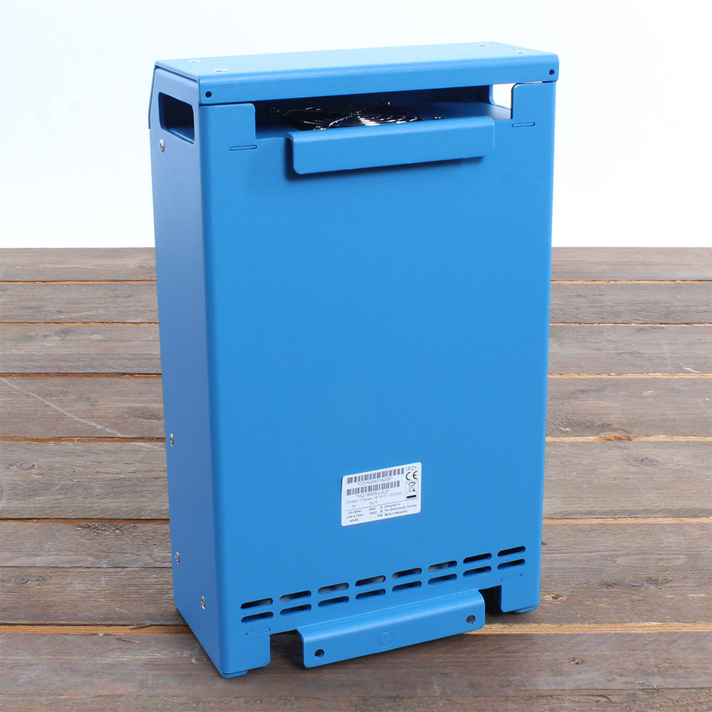 De Victron Centaur acculader 24/16 (3) is een krachtige 24V lader met 3 geïsoleerde uitgangen die ieder de maximum uitgangsstroom kunnen leveren. De Centaur kan hierdoor drie accubanken tegelijkertijd laden en onderhouden. En met de brede ingangsspanning van 90 tot 265 VAC is de Centaur overal ter wereld inzetbaar, ook op plaatsen waar een slechte netspanning aanwezig is. Deze lader heeft een totale laadcapaciteit van 30A en ieder van de uitgangen kan deze 16A leveren.