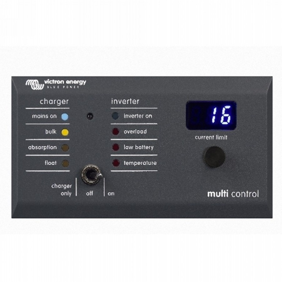 De Victron Digital Multi Control 200/200A GX is informatie en bedieningspaneel voor Victron Multiplus en Victron Quattro omvomers/laders. Dit is inclusief standalone, parallelle, en 2+3-fase configuraties. Zowel VE.Bus als non VE.Bus systemen worden ondersteund.