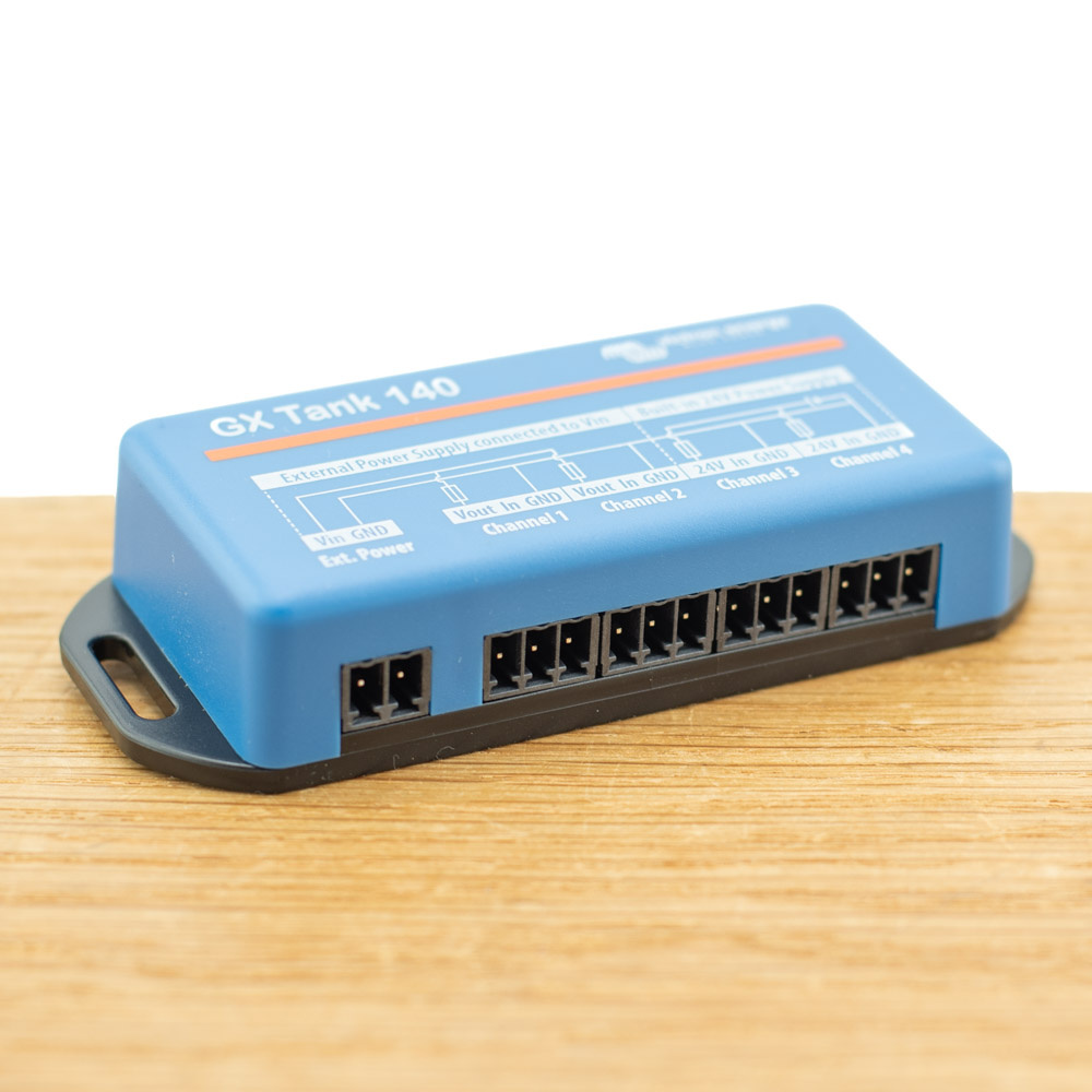 De Victron GX Tank 140 kan tot 4 tanklevelsensoren aflezen. De GX Tank 140 is een accessoire bedoeld voor een Victron GX-systeem, waarvan de Cerbo GX het meest gebruikte product is. Deze tanksensoradapter kan daarop direct aangesloten worden met een USB kabel. Tankniveaus kunnen vervolgens zowel lokaal in het systeem (met de Victron app of op het GX Touch 50 scherm) als op afstand via het VRM Portal afgelezen worden (hiervoor is dan wel een GSM module nodig).