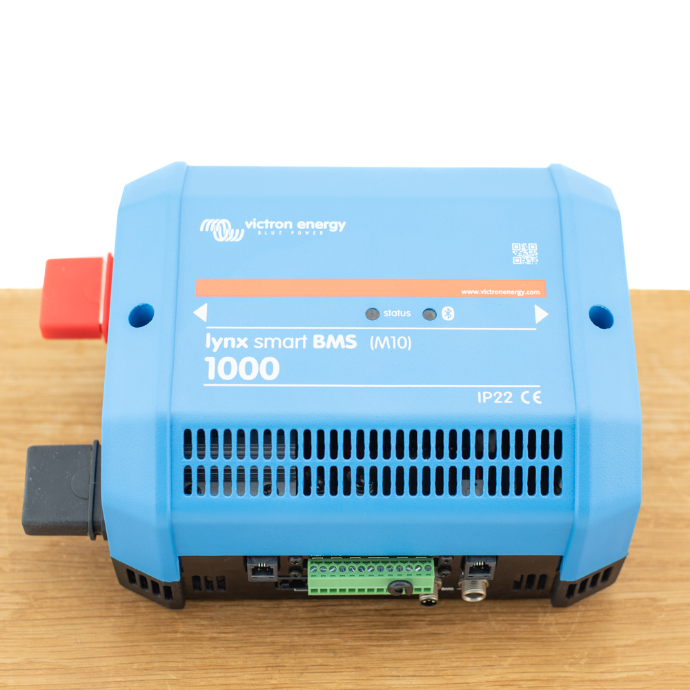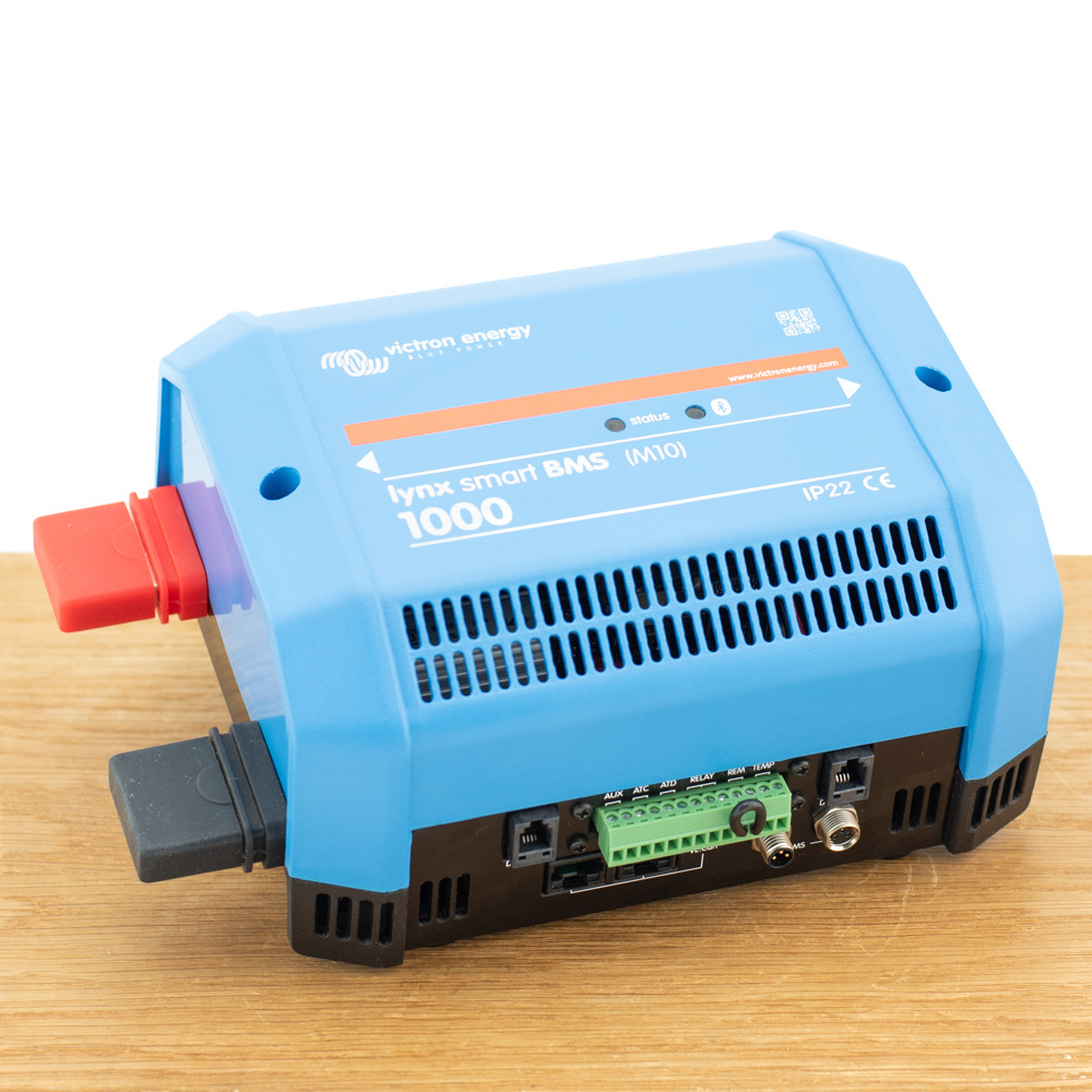 Het Victron Lynx Smart BMS 1000 (M10 aansluitingen) is een batterijbeheersysteem (BMS) voor Victron Smart lithiumbatterijen. Het maakt onderdeel uit van het Lynx-distributiesysteem. Het Lynx-distributiesysteem is een modulair railsysteem dat DC-aansluitingen, distributie, afzekering, batterijbewaking en/ of lithiumbatterijbeheer omvat.