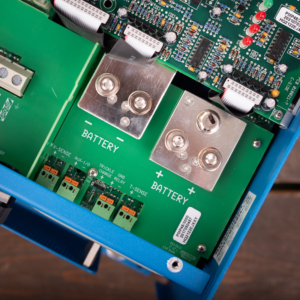 Accu-aansluiting: Vier M8-bouten (2 positieve en 2 negatieve aansluitingen)