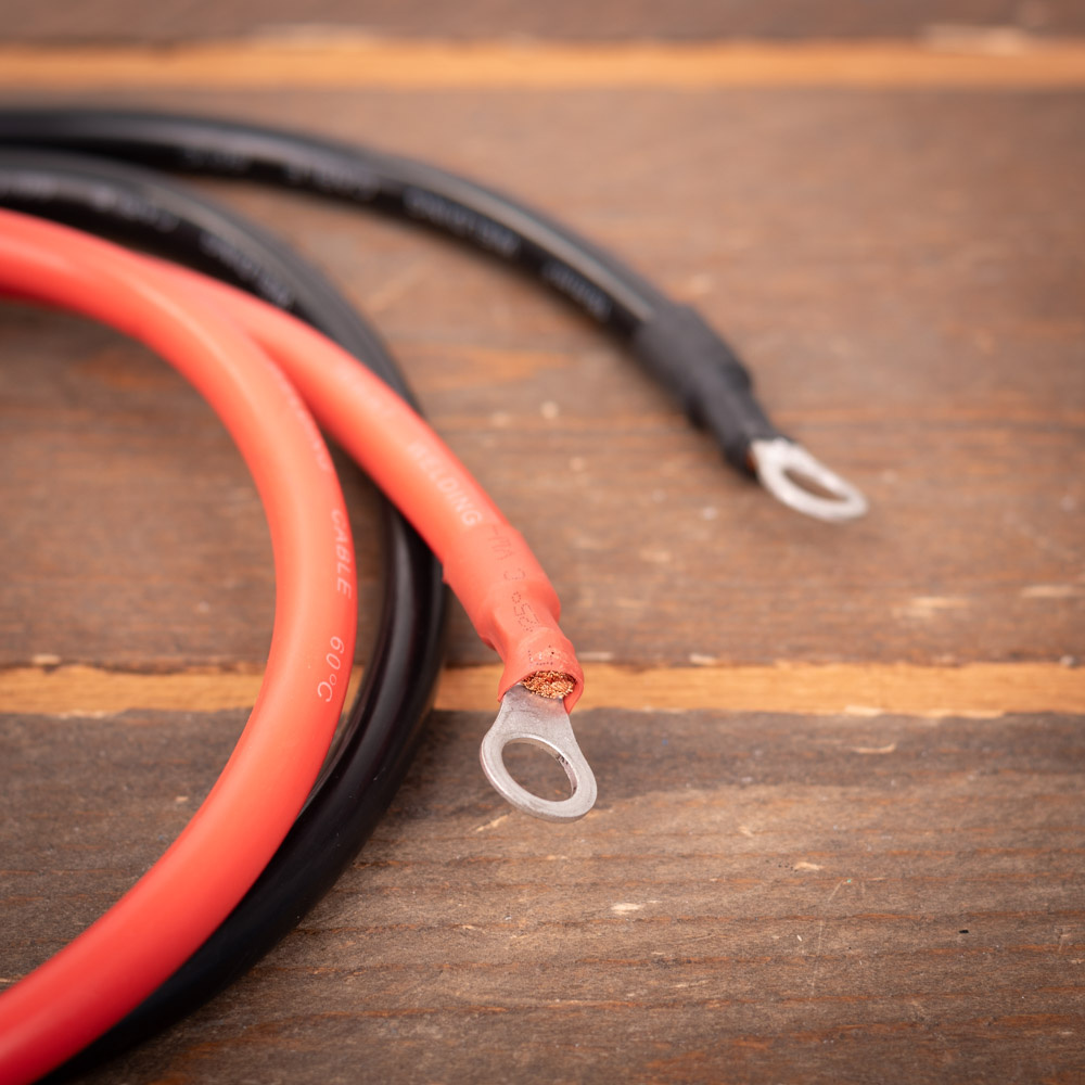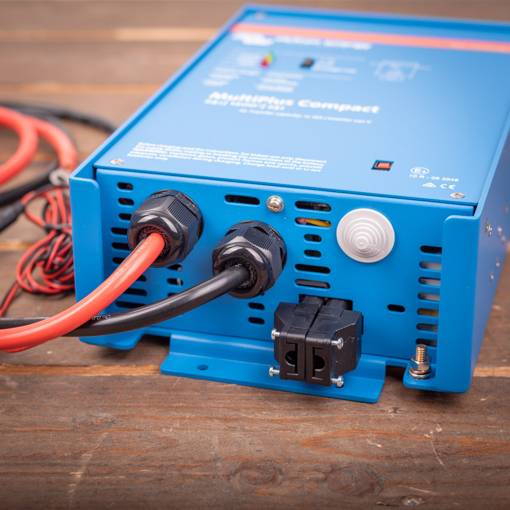 De Victron MultiPlus Compact wordt geleverd inclusief de benodigde 16 mm² accukabels van 1,5 meter lang.
