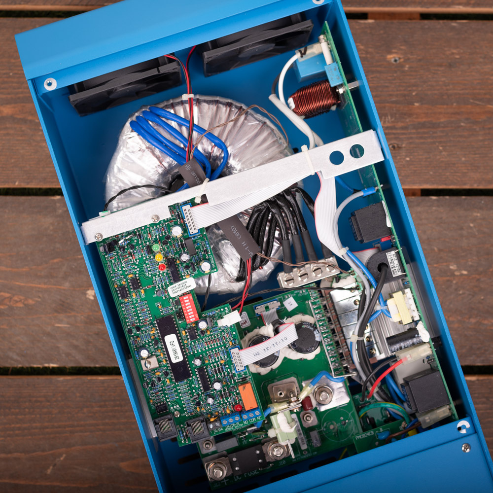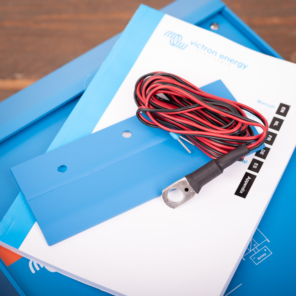 De Victron MultiPlus wordt geleverd zonder de benodigde kabels. U kunt hiervoor 35 mm² kabels gebruiken (35 mm² rode accukabel/ laskabel en 35 mm² zwarte accukabel/ laskabel). Bekabeling kunt u ook vinden via de links onderaan de tekst bij dit product. De stekkers voor de in- en uitgang op de Multiplus voor 230V worden wel meegeleverd.