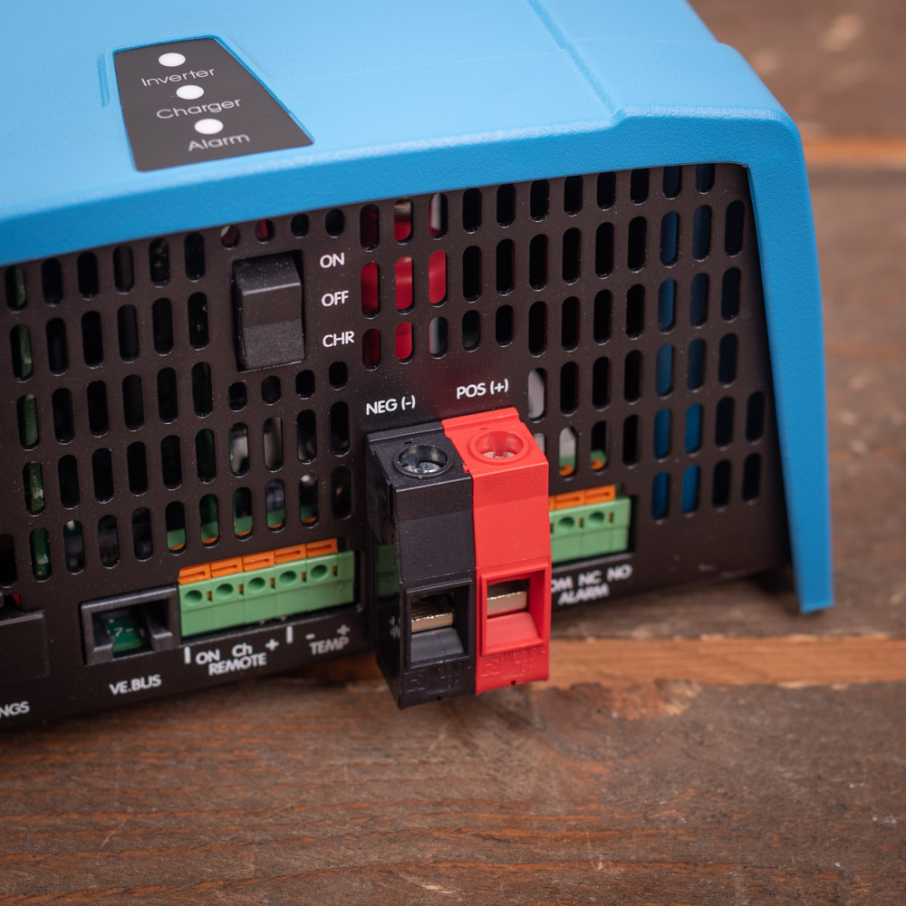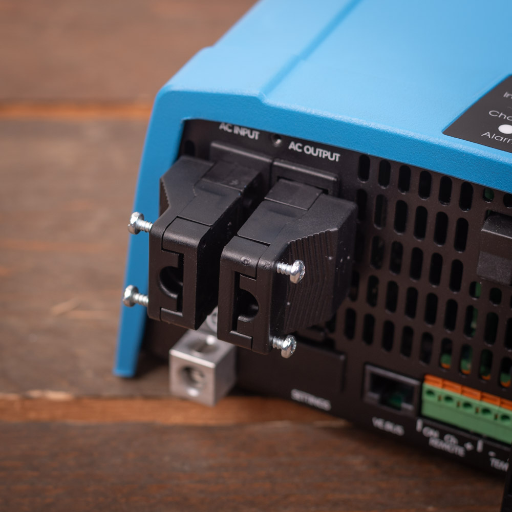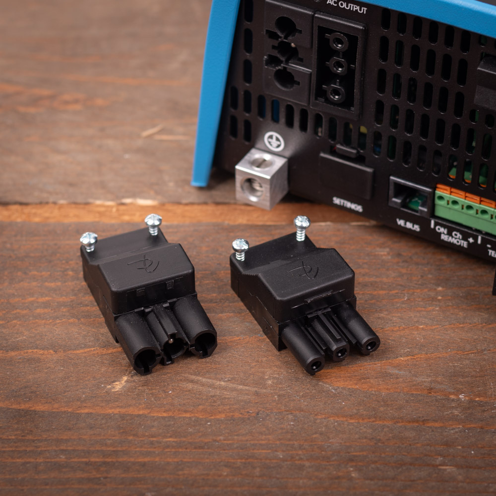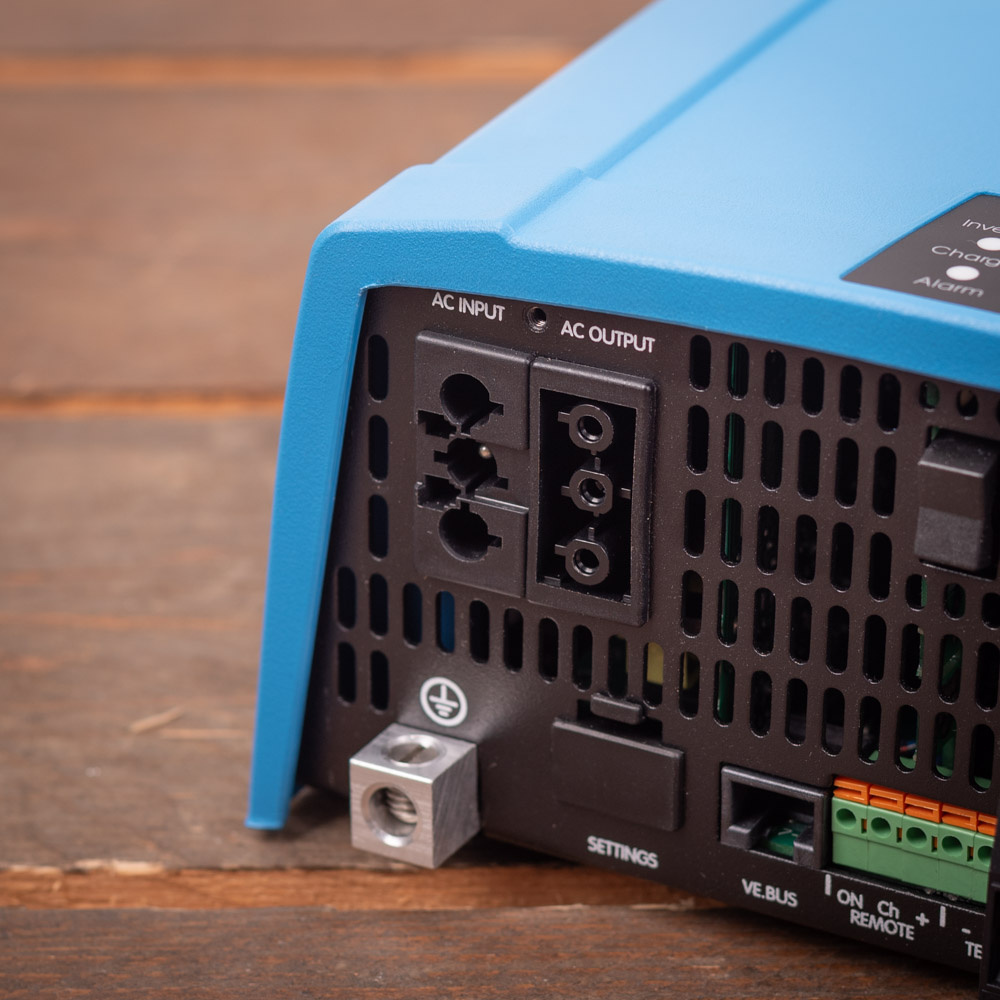 De Victron MultiPlus wordt geleverd zonder de benodigde kabels. U kunt hiervoor 10 mm² kabels gebruiken (10 mm² rode accukabel/ laskabel en 10 mm² zwarte accukabel/ laskabel) bij een afstand tot de accu van maximaal 5 meter. Bij langere afstand tot de accu dan 5 meter wordt geadviseerd 16 mm² kabels te gebruiken. Bekabeling kunt u ook vinden via de links onderaan de tekst bij dit product. De stekkers voor de in- en uitgang op de Multiplus voor 230V worden wel meegeleverd.