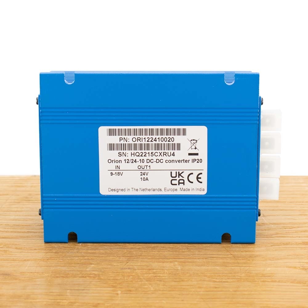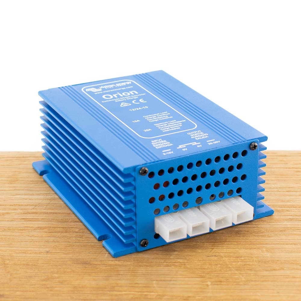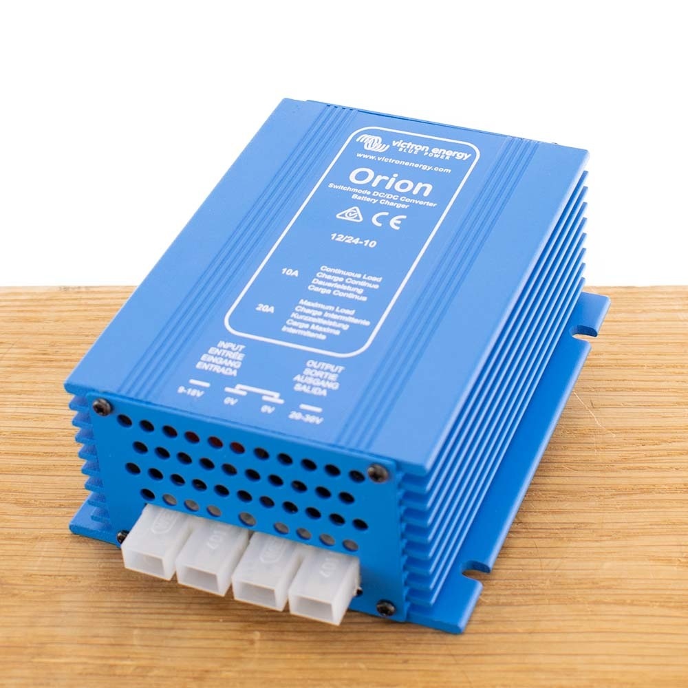 Met de Victron Orion 12/24-10A Non Isolated omvormer/ acculader kunt u een 24 Volt accessoire-accu opladen in een 12V-systeem. De uitgangsspanning is regelbaar.
