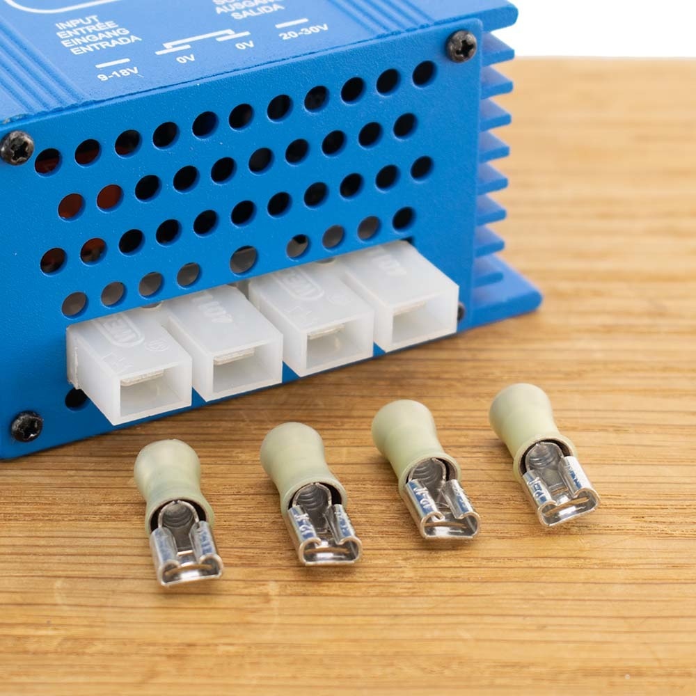 De Victron Orion installeert is eenvoudig te installeren met de 4 geïsoleerde Faston Female Crimp klemmen (6,3mm) die meegeleverd worden bij de omvormer. De gebruiksaanwijzing is verder kort en bondig en Nederlandstalig.