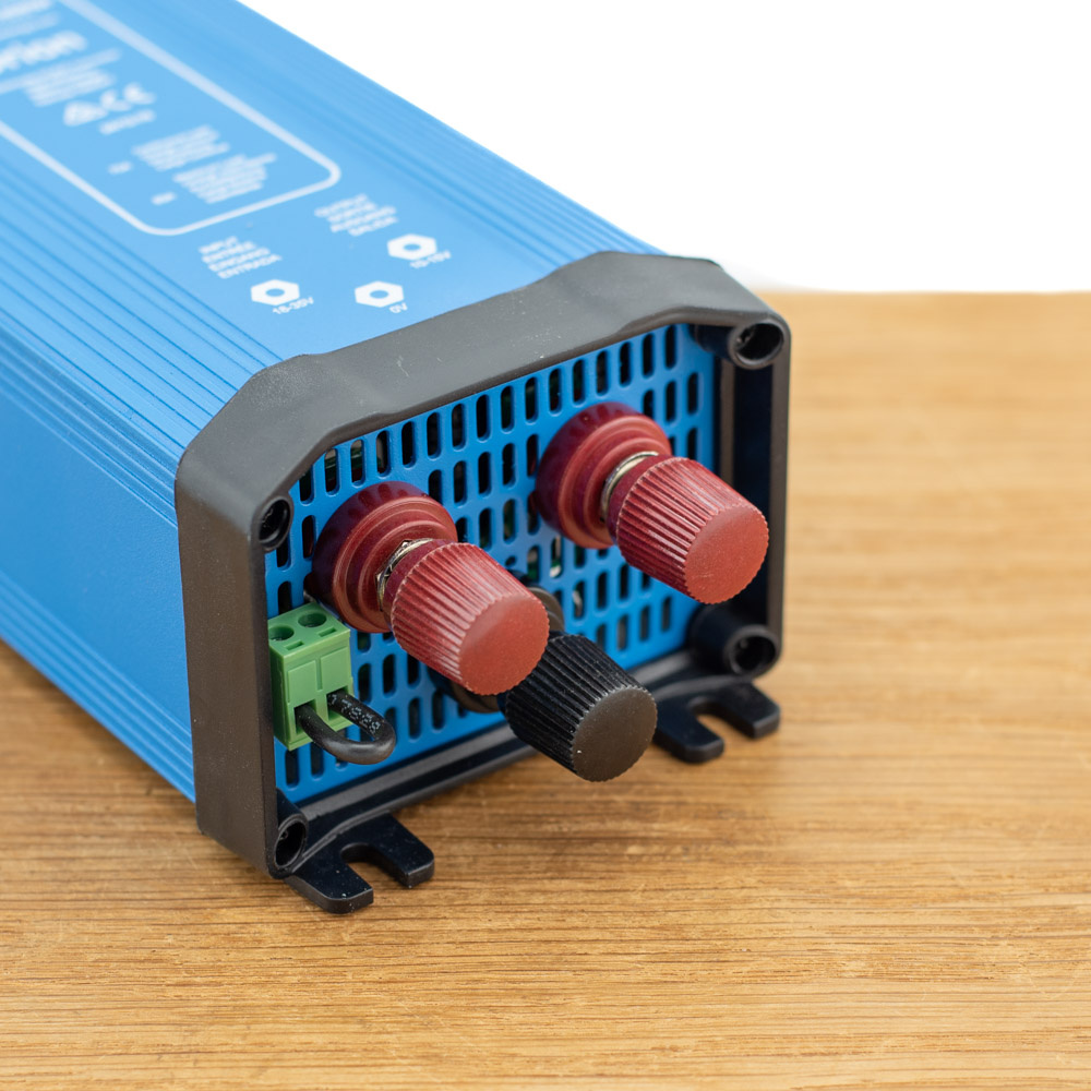 De Victron Orion installeert u eenvoudig met de binding posts bouten op de omvormer. U schroeft de Orion verder gemakkelijk vast op een vlakke ondergrond. De gebruiksaanwijzing is verder kort en bondig en Nederlandstalig.