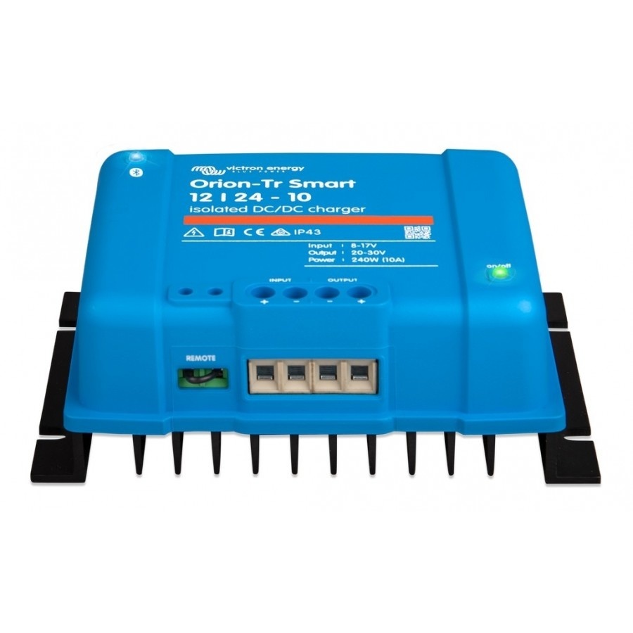 Met de Victron Orion-Tr Smart DC-DC 12/24-10A omvormer/ acculader kunt u een 24 Volt accessoire-accu opladen in een 12V-systeem. Deze Orion-Tr Smart is speciaal ontwikkeld voor gebruik in systemen met een ECO (slimme) dynamo (Euro 5 / Euro 6 motoren). Ondanks de wisselende dynamo-spanning kan de aangesloten accu toch goed worden opgeladen door deze DC-DC lader. De Orion-Tr Smart kan via Bluetooth gemonitord en geprogrammeerd worden.