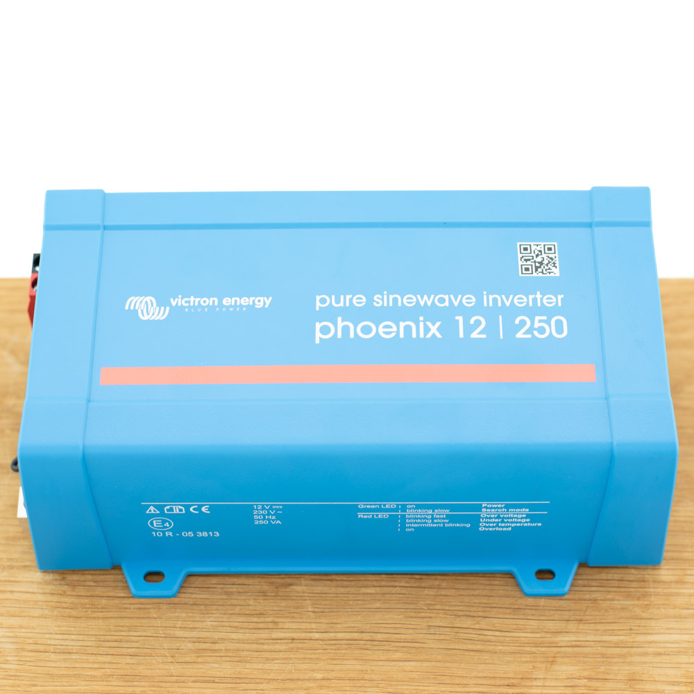 De Victron Phoenix 12/250 Omvormer is een zuivere sinusomvormer die een 12 V accuspanning converteert naar een betrouwbare 230 V 50/60 Hz spanning. Daarbij geeft de Phoenix 12/250 200 Watt aan continue vermogen en 400 Watt aan piekvermogen. Hiermee kunt u dus 230V apparatuur aansluiten en voeden via uw 12V accu.
