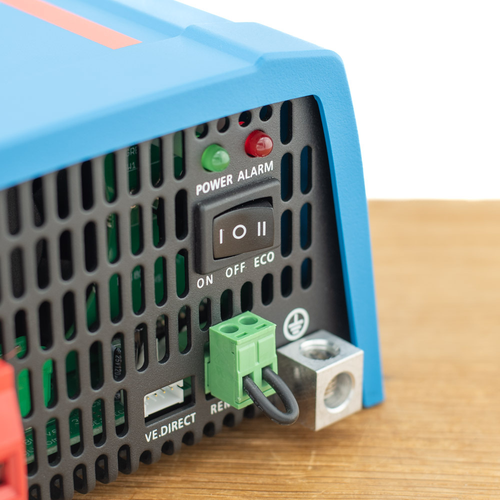 De Phoenix omvormer is beveiligd tegen te hoge temperatuur, overbelasting, uitgangskortsluiting en te hoge of te lage accuspanning.